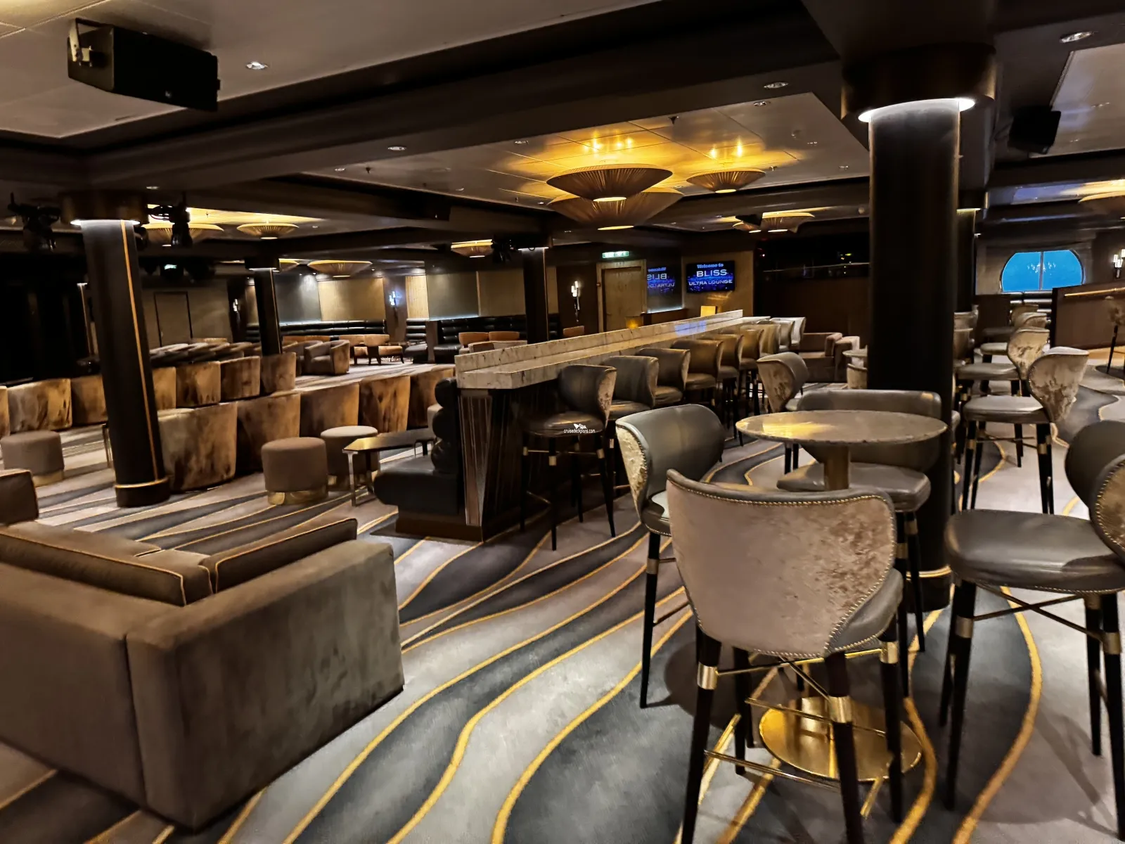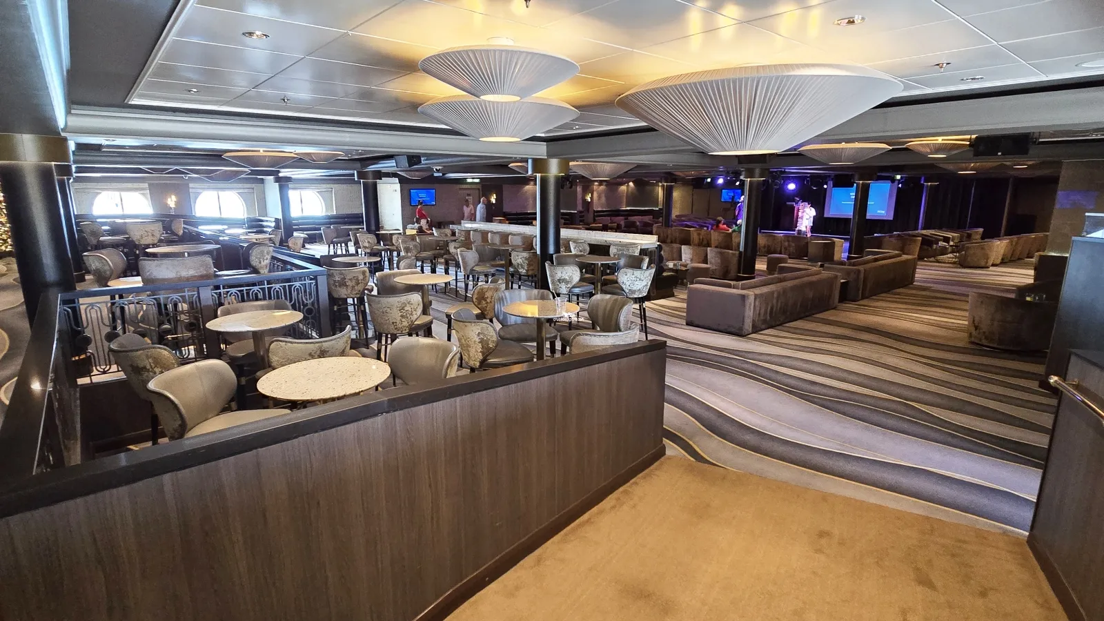 The ship's second main show lounge, that can seat 457 guests and has horizontal windows in the floor allowing guests to enjoy a fantastic view. Featuring its own bar and dance floor it becomes home to the ships DJ later on in the night with dancing into the small hours whilst during the day it is the location for bingo, dance classes and game shows including the Not-So-Newlywed show. Was called Spinnaker Lounge prior to May 2016 drydock.Photo Gallery