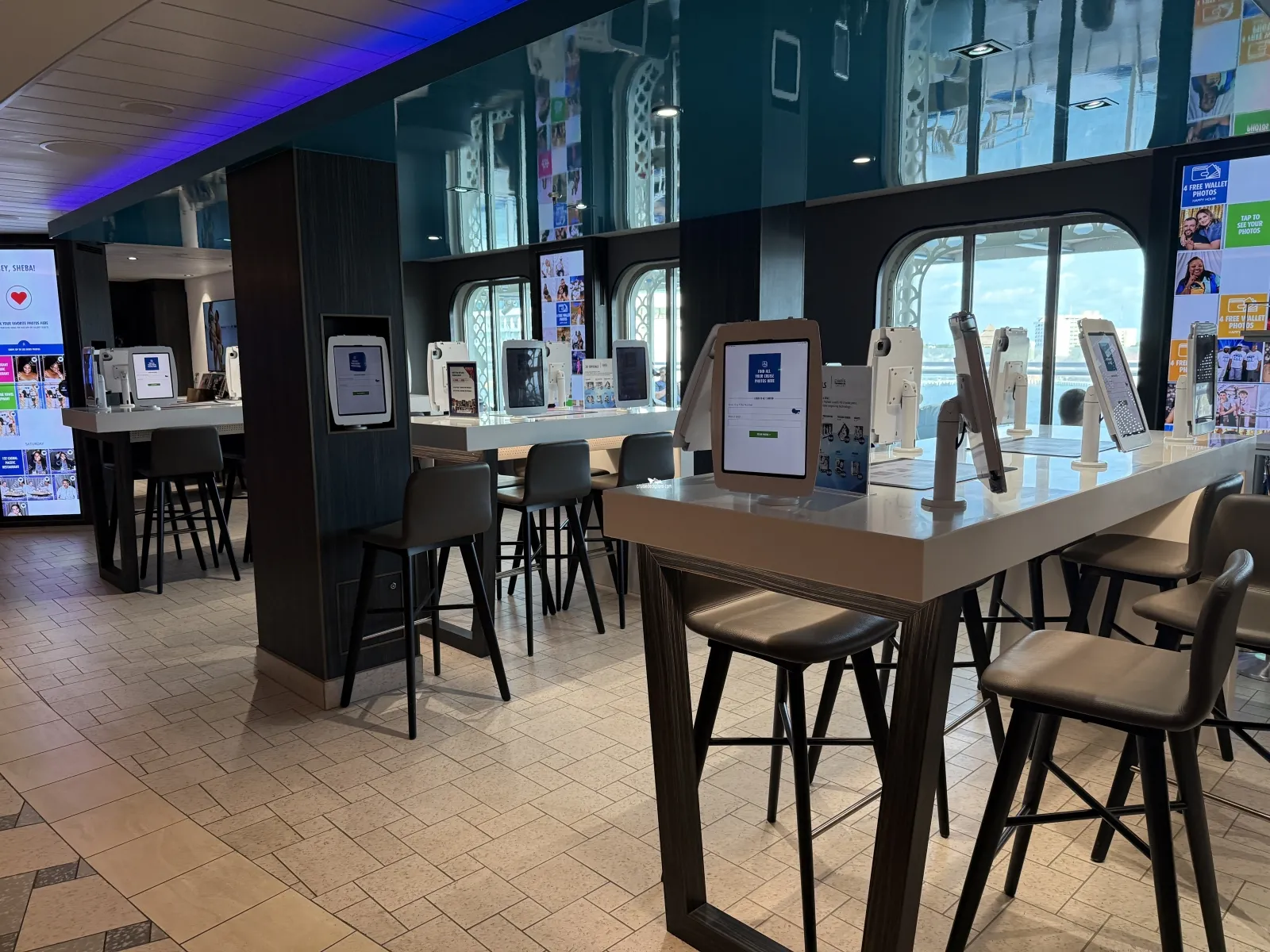 Passenger services desk open 24 hours. Includes information desk, financial transactions, lost and found, safe boxes and port information.Outside Promenade