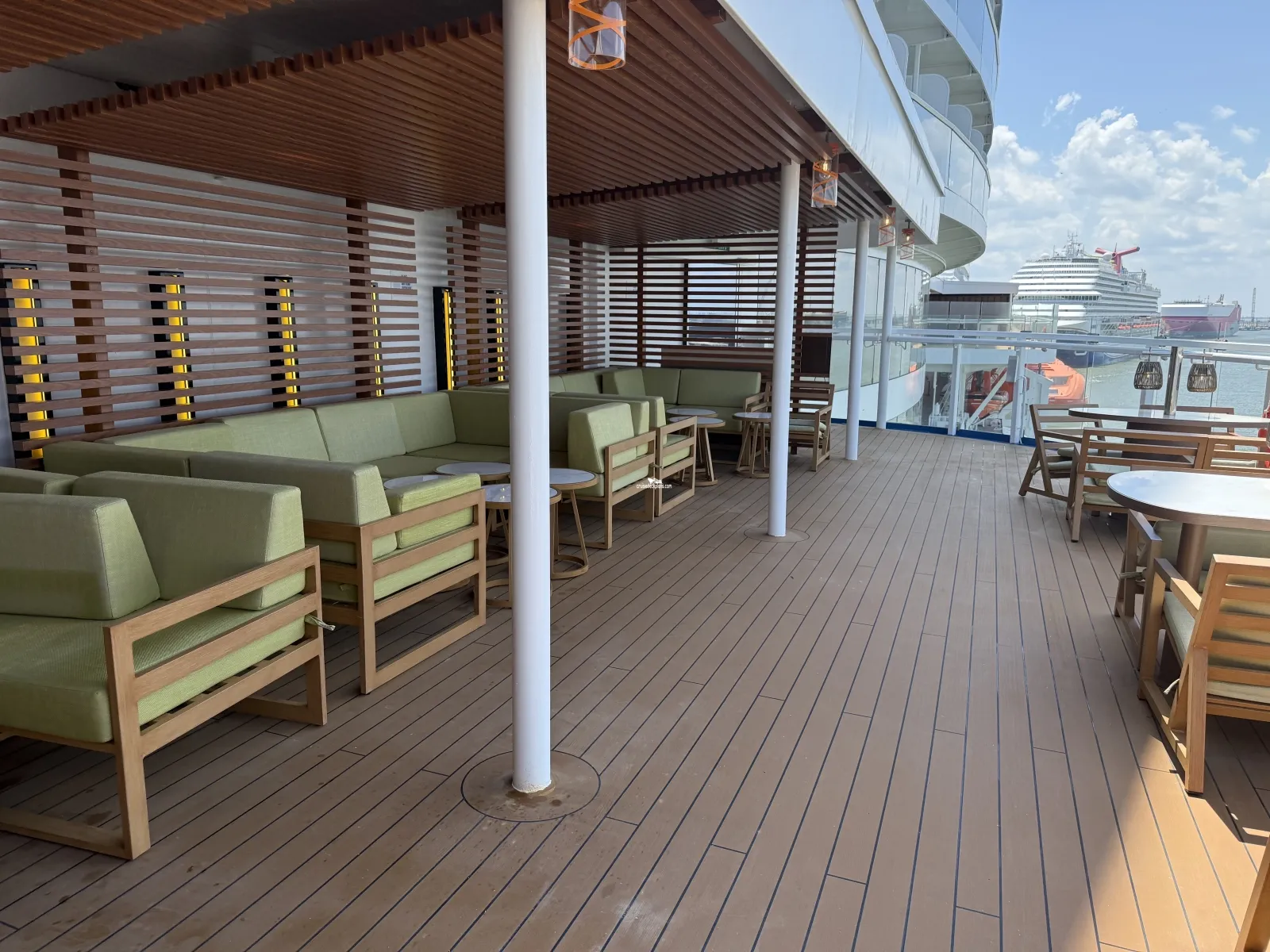 Outside promenade and Lanai with a public pool located on the aft of the ship. Pool is open from 8:00 a.m. till midnight.Havana Pool