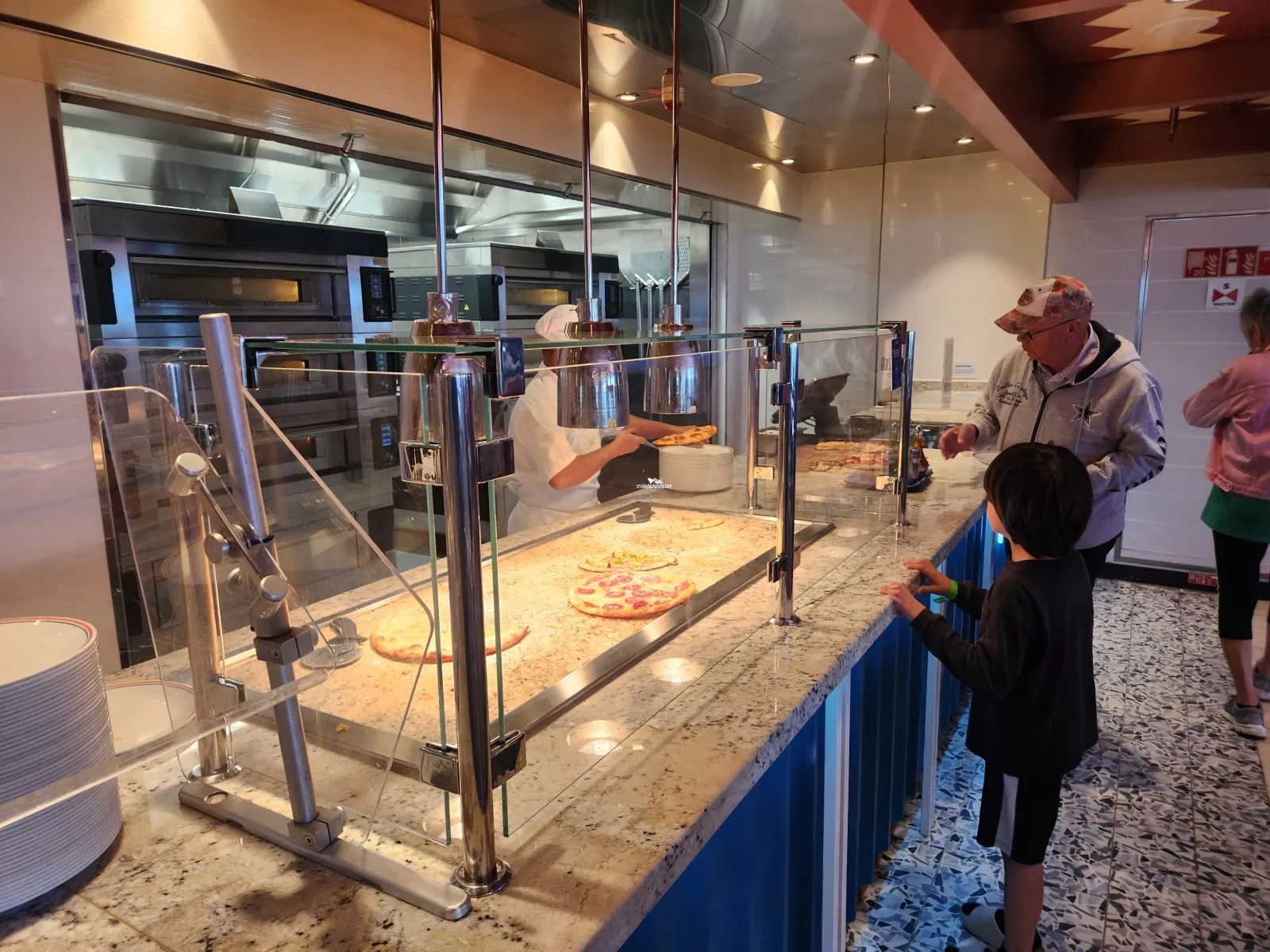 Serves pizza 24 hours a day. Self-service featuring complimentary, delicious, hand-tossed, authentic Italian-style, thin-crusted pies made in a traditional pizza oven. There are dedicated tables and seating.Cabin Check Tool