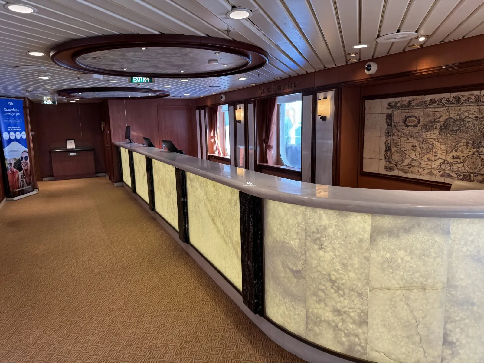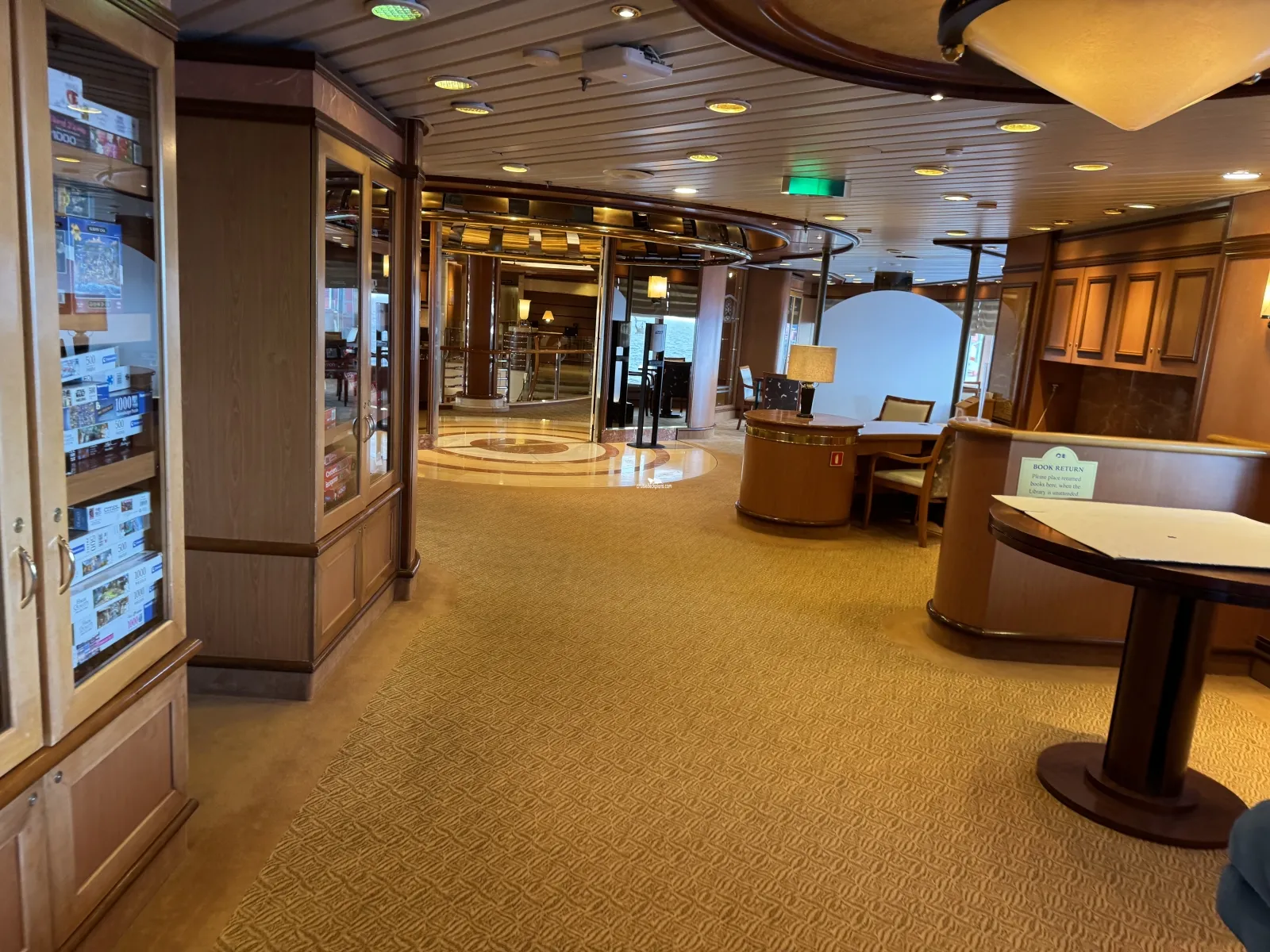 Lounge for planning and booking ship sponsored shore excursions.Card Room