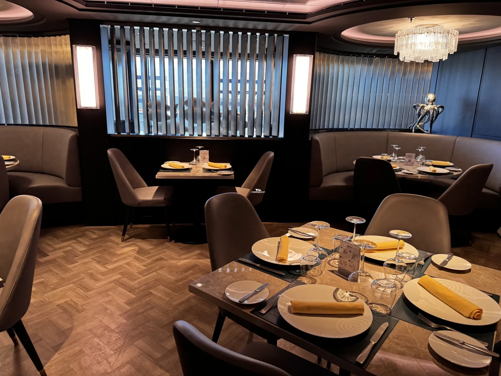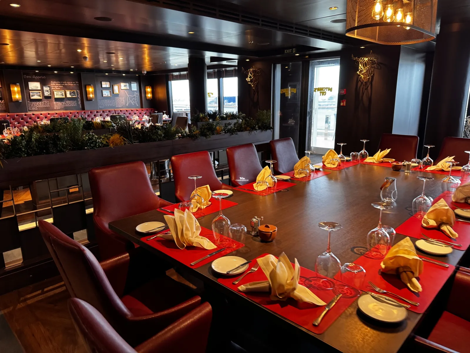 The American-style steakhouse serves select prime cuts from around the world, accompanied by bold New World wines and cocktails with swagger. Seats 72 people.Ocean Cay Restaurant
