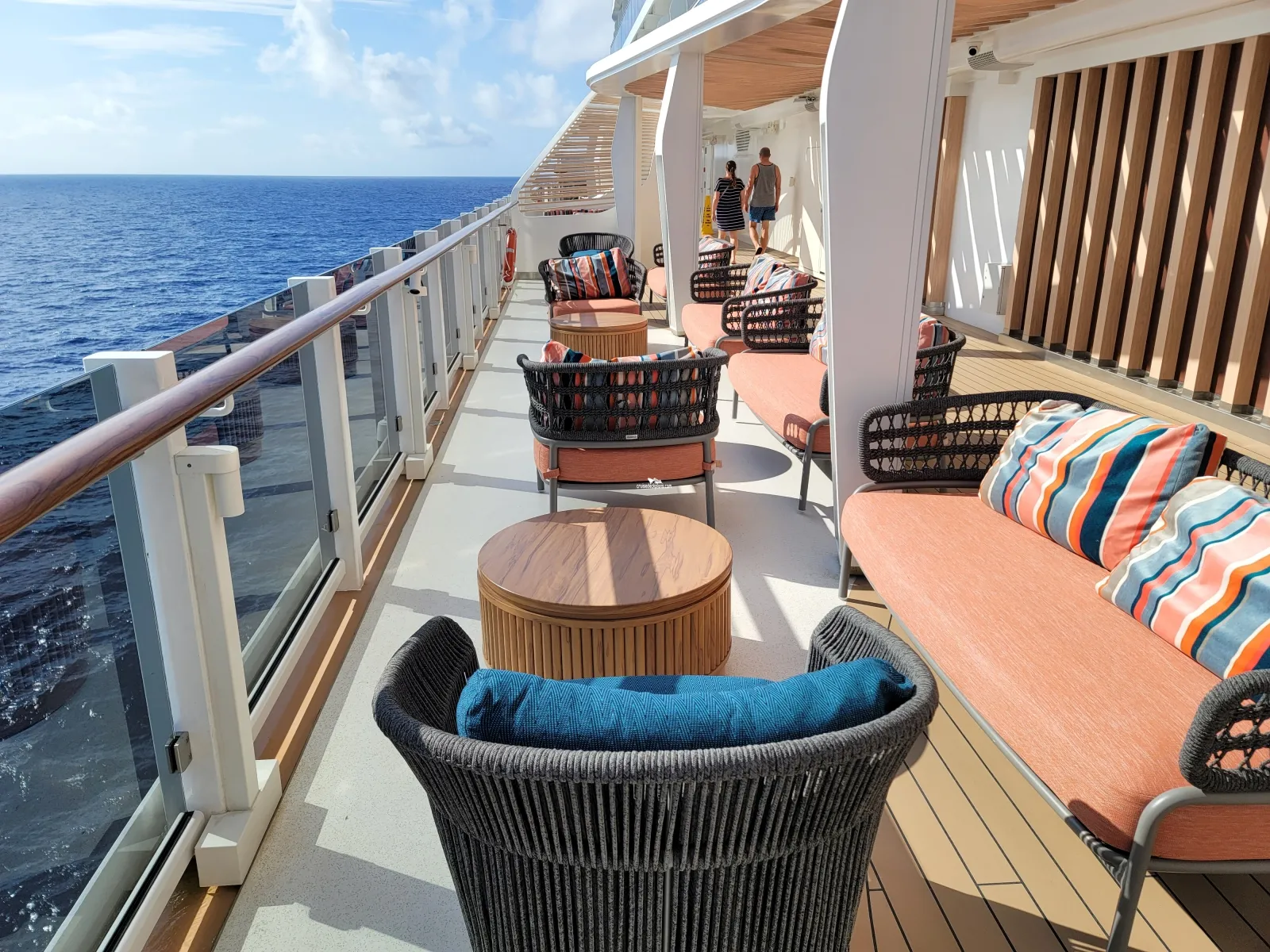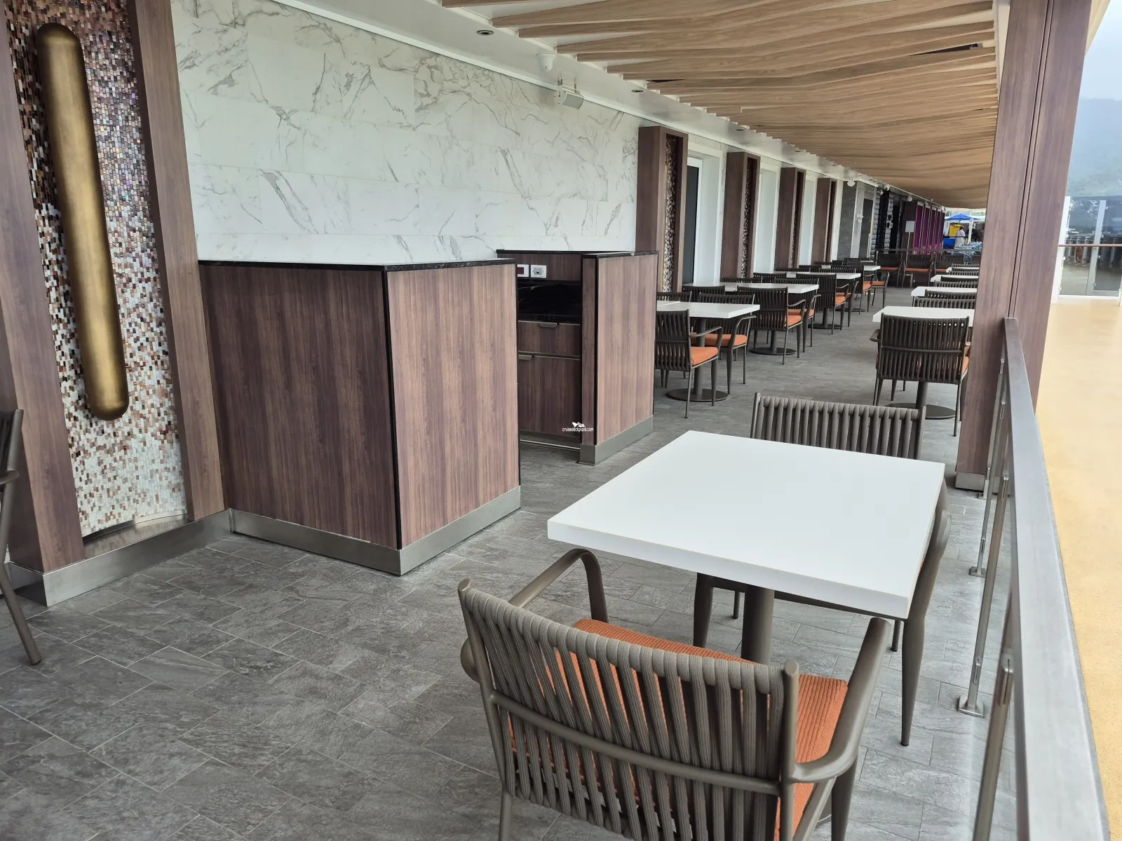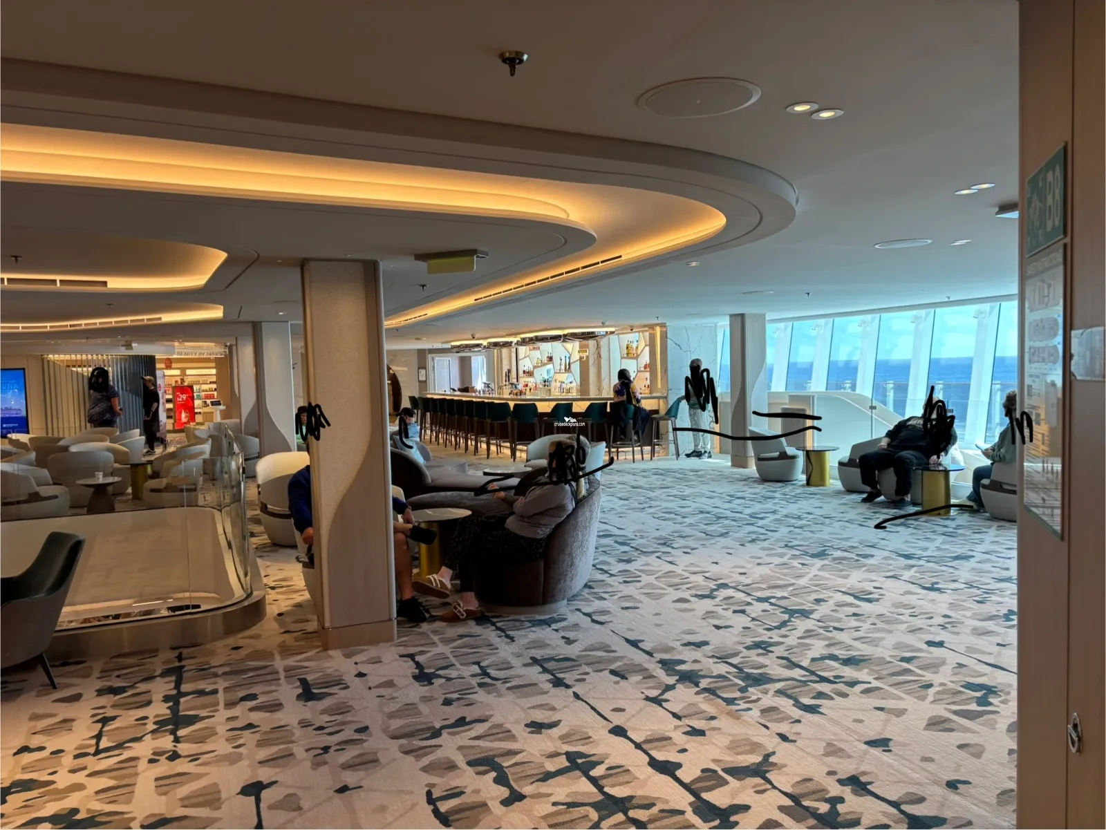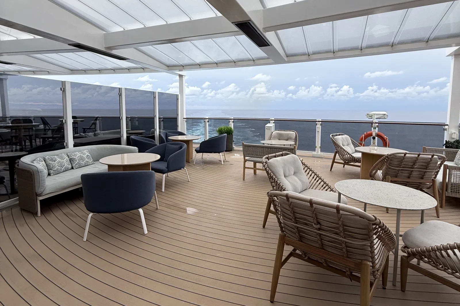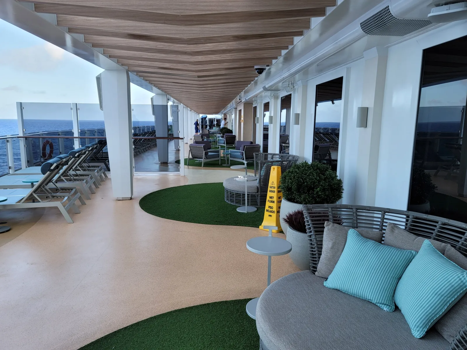 Outdoor promenade that circles the ship on deck 8 with plenty of places to sit and enjoy the view.Deck 8 Shops