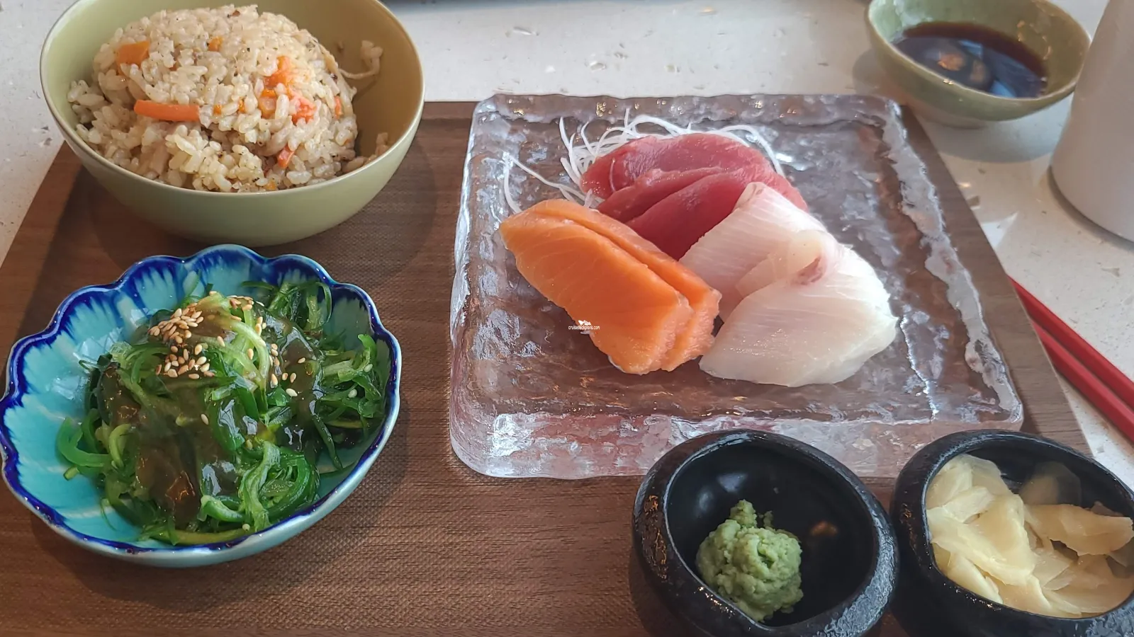 True Japanese delight. Although small, and the menu is primarily limited to sushi type foods, it has a good window location and the food is well prepared. Everything was fresh, tasty and wonderfully presented. A secret, it is open for lunch on sea days, but no reservations so get there early.Piazza