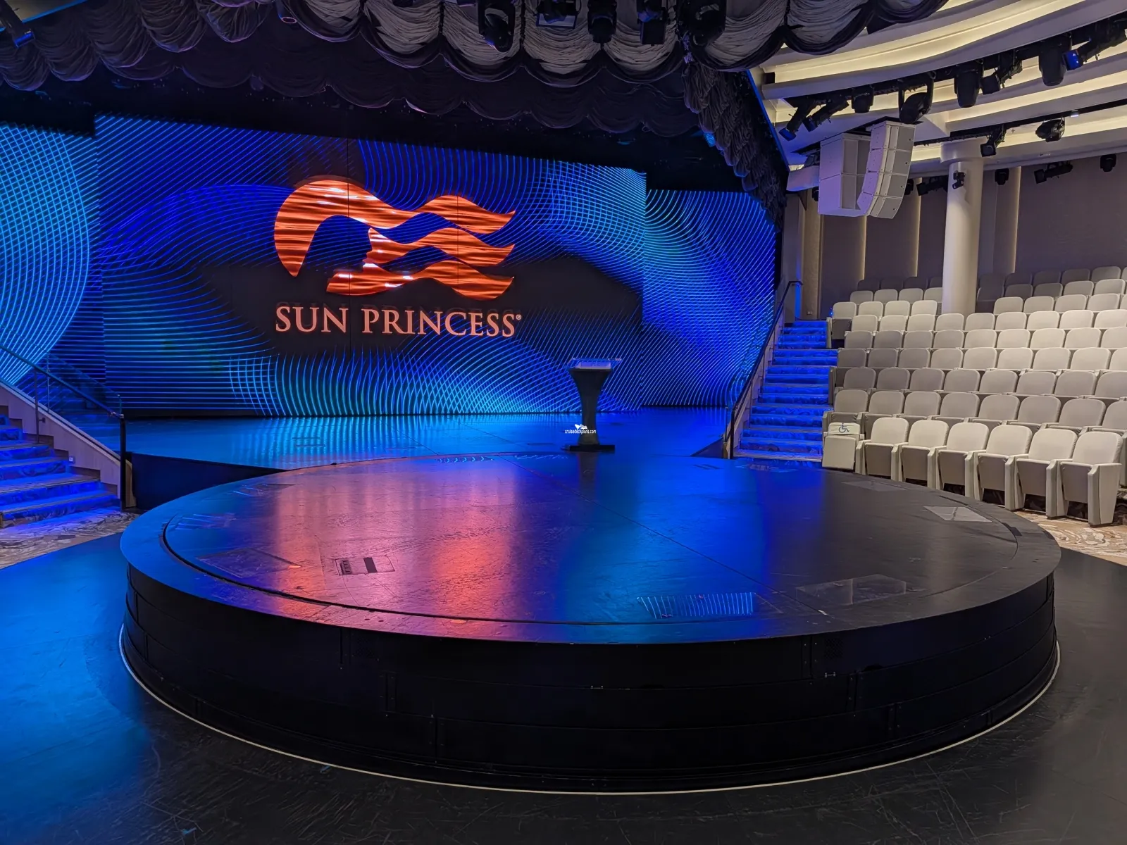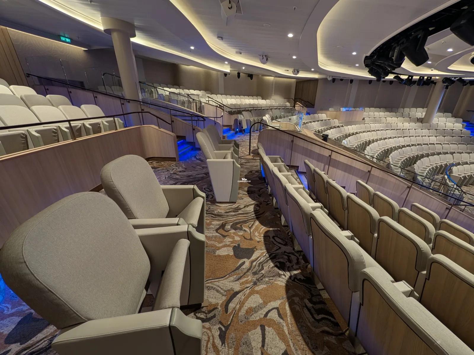 Two level theater located in forward part of ship featuring a round center stage. With moveable seats and capacity of a little more than 850 people (smaller stage allows up to 990 people), three configurations will maximize sight lines, as technological capabilities deliver a truly captivating experience.Sanctuary Dining Room