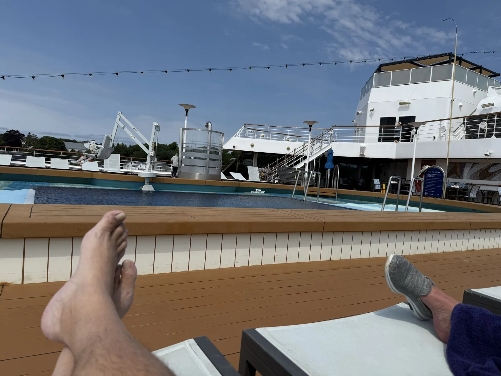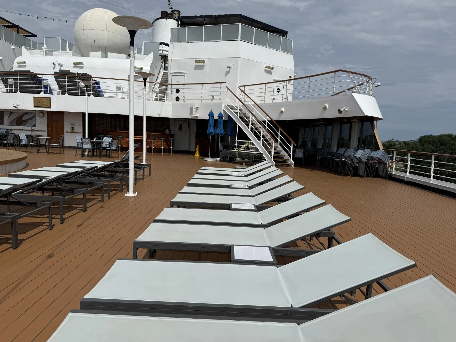 Aft pool with plenty of loungers and serviced by Sea View Bar.Lido Pool
