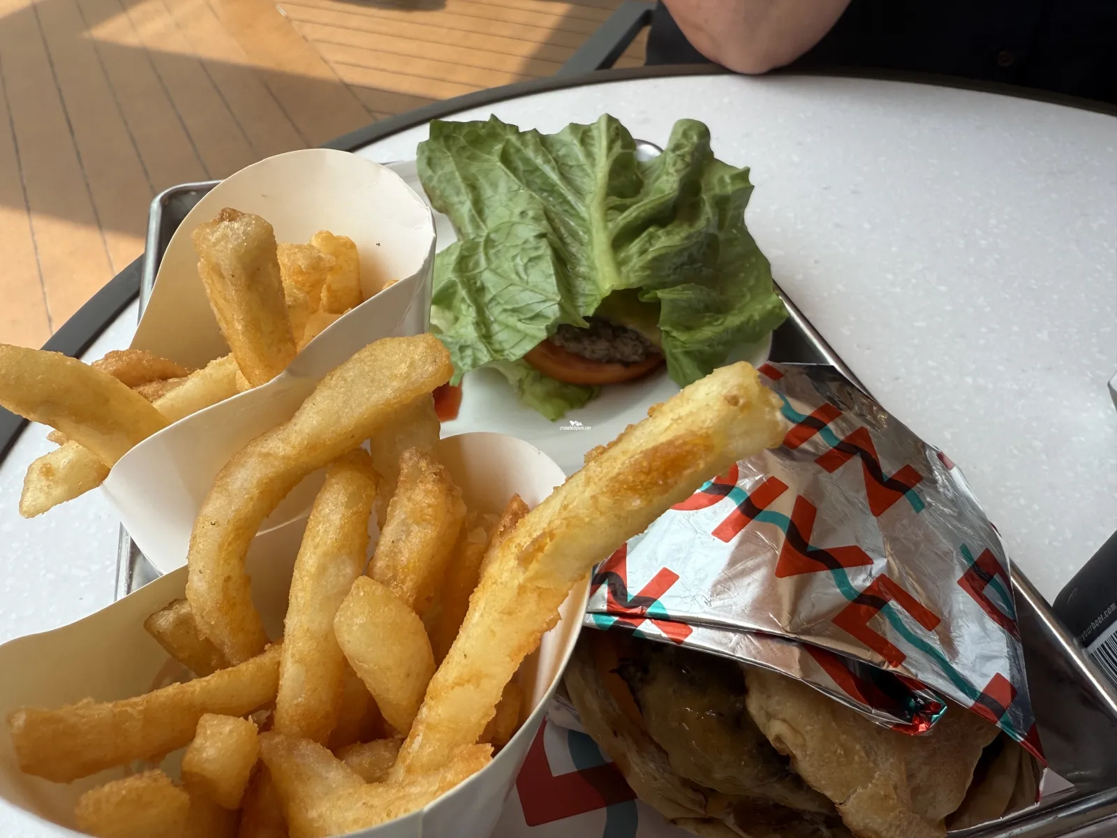 Complimentary fast food bar serving hot dogs, burgers and fries.Seafood Boil