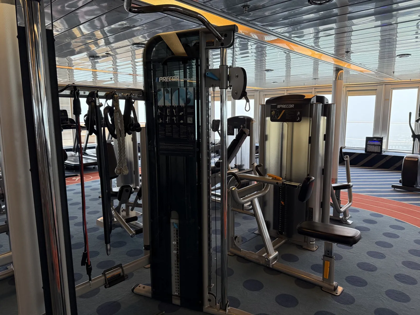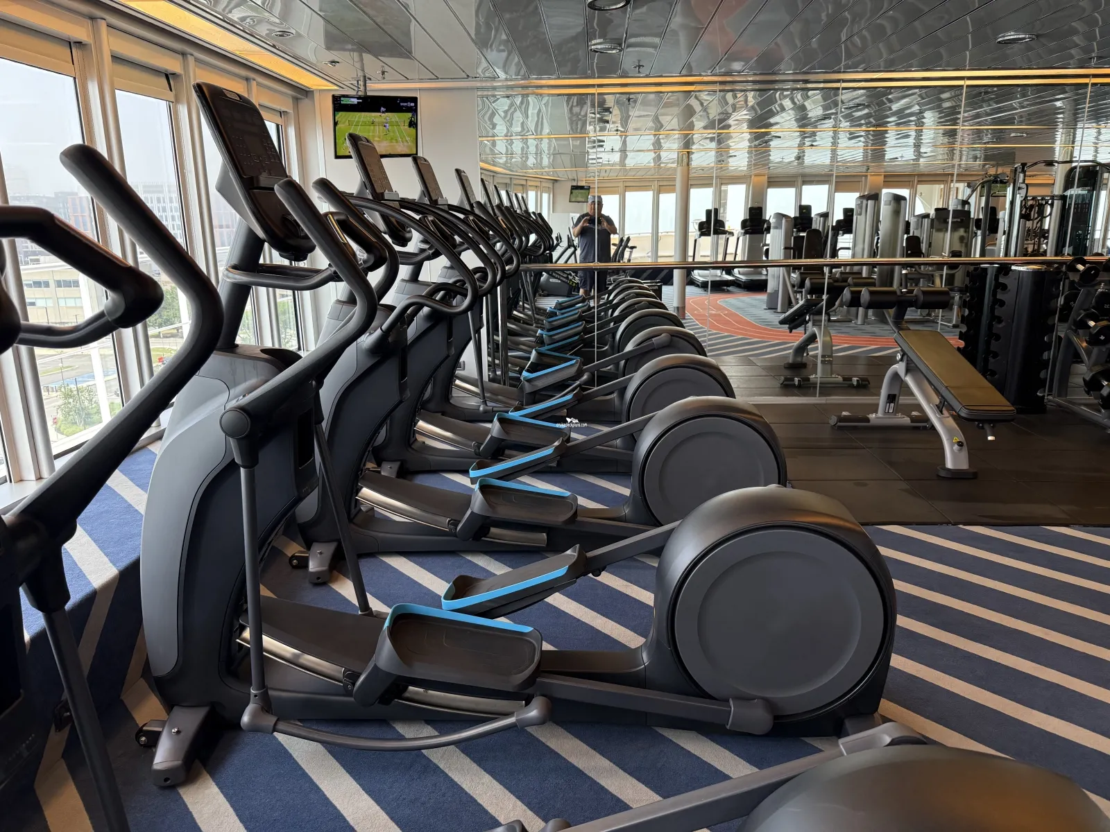 Main pool that has retractable glass roof and two whirlpools. Also in this area is the Lido Bar and a stage for live music.Fitness Center