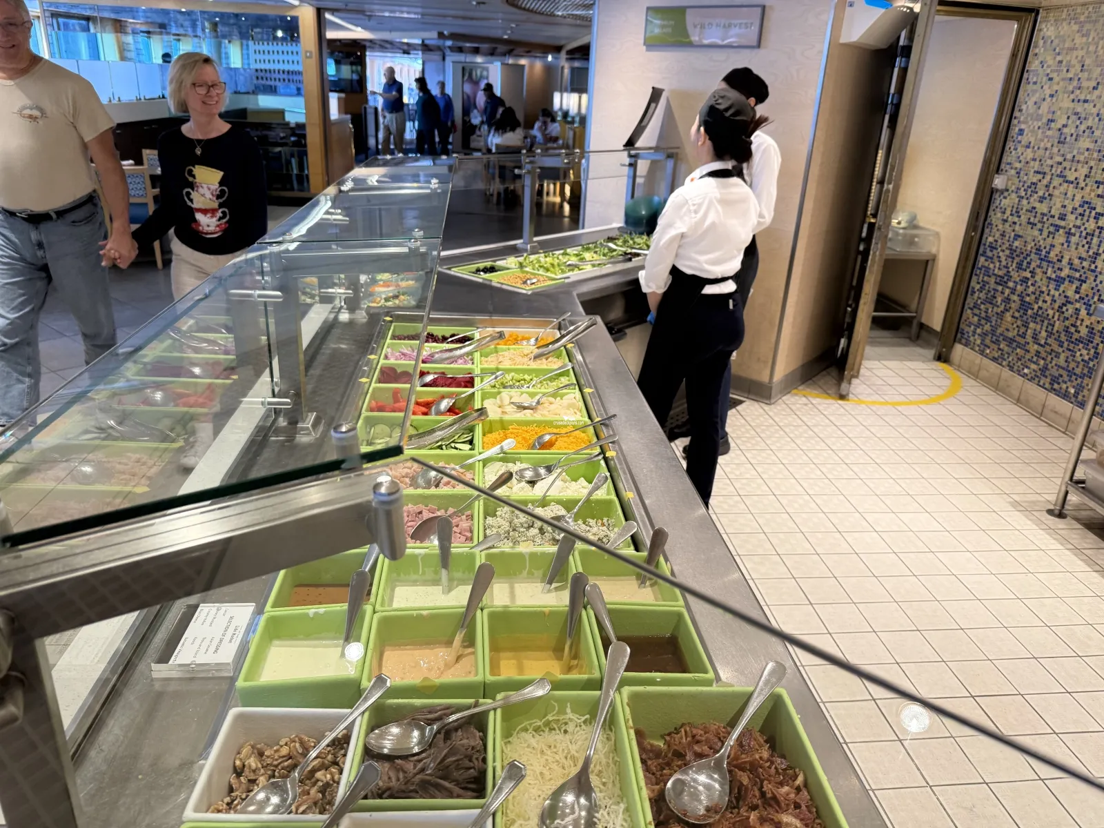 The ship's buffet restaurant that offers a variety of food choices for all 3 meals of the day.Sea View Pool