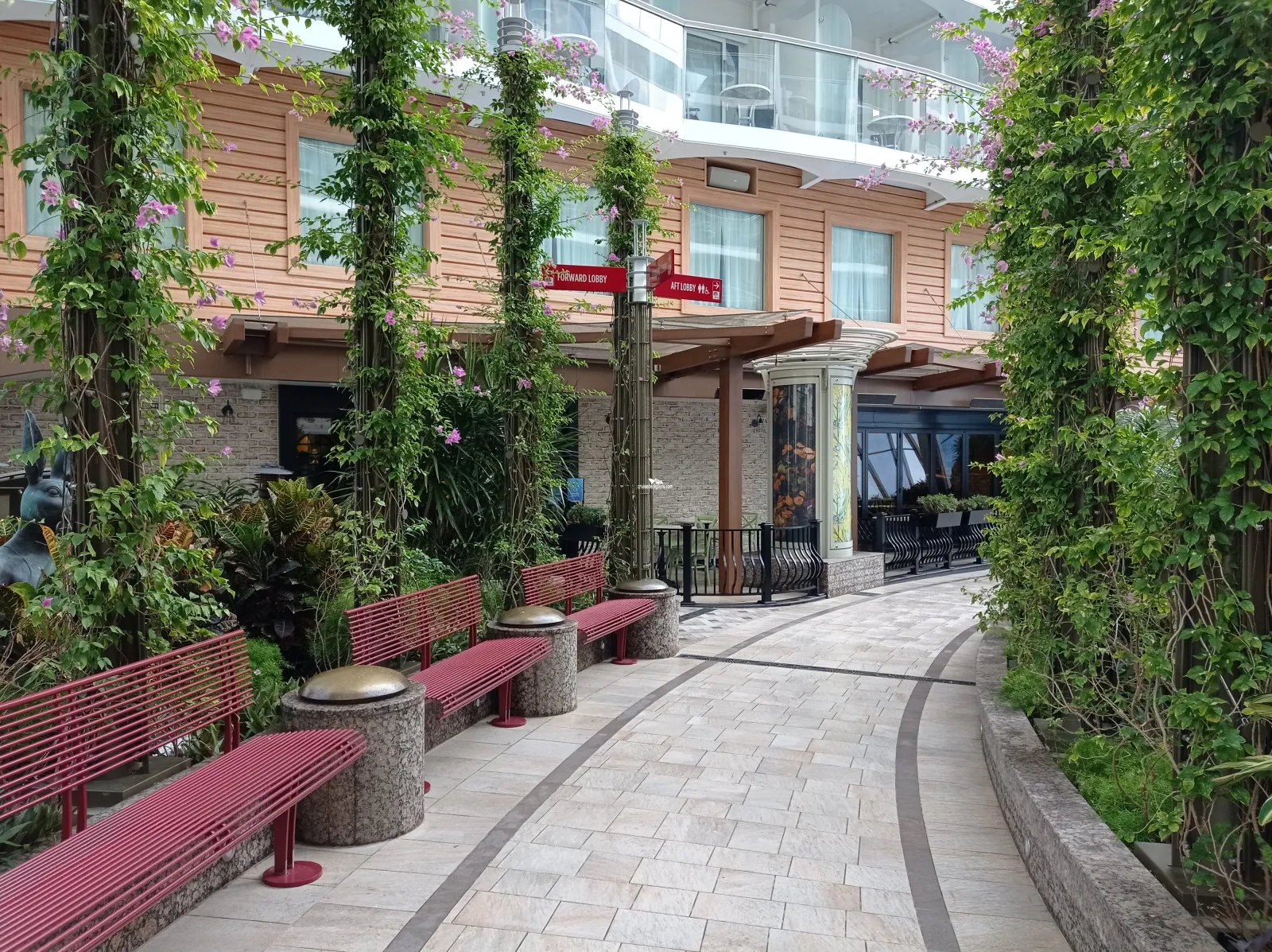 * Boardwalk balconies cabins on this deck are two floors above the boardwalk below. Because they sit lower on the inside of the ship these balconies may not get a lot of direct sun. There could also be noise issues from the Boardwalk, however these can be good people watching balconies. The more aft your cabin is the less enclosed you will feel and you will also have a good view of the Aquatheater. Keep in mind that these balconies are not private and can be viewed by balconies on the opposite side of the ship and also from the balcony of your neighbor.