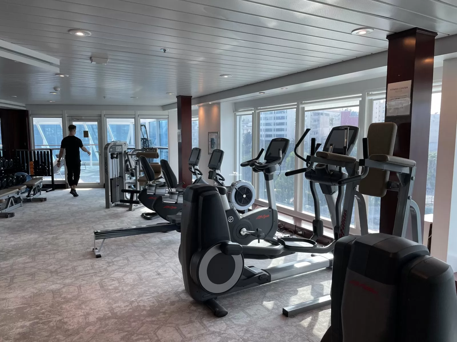 The Spa Terrace (located on the bow) has loungers and outdoor spa with massaging jets. The Terrace is free for suite guests, otherwise there will be a charge by the day or for the cruise.Fitness Center