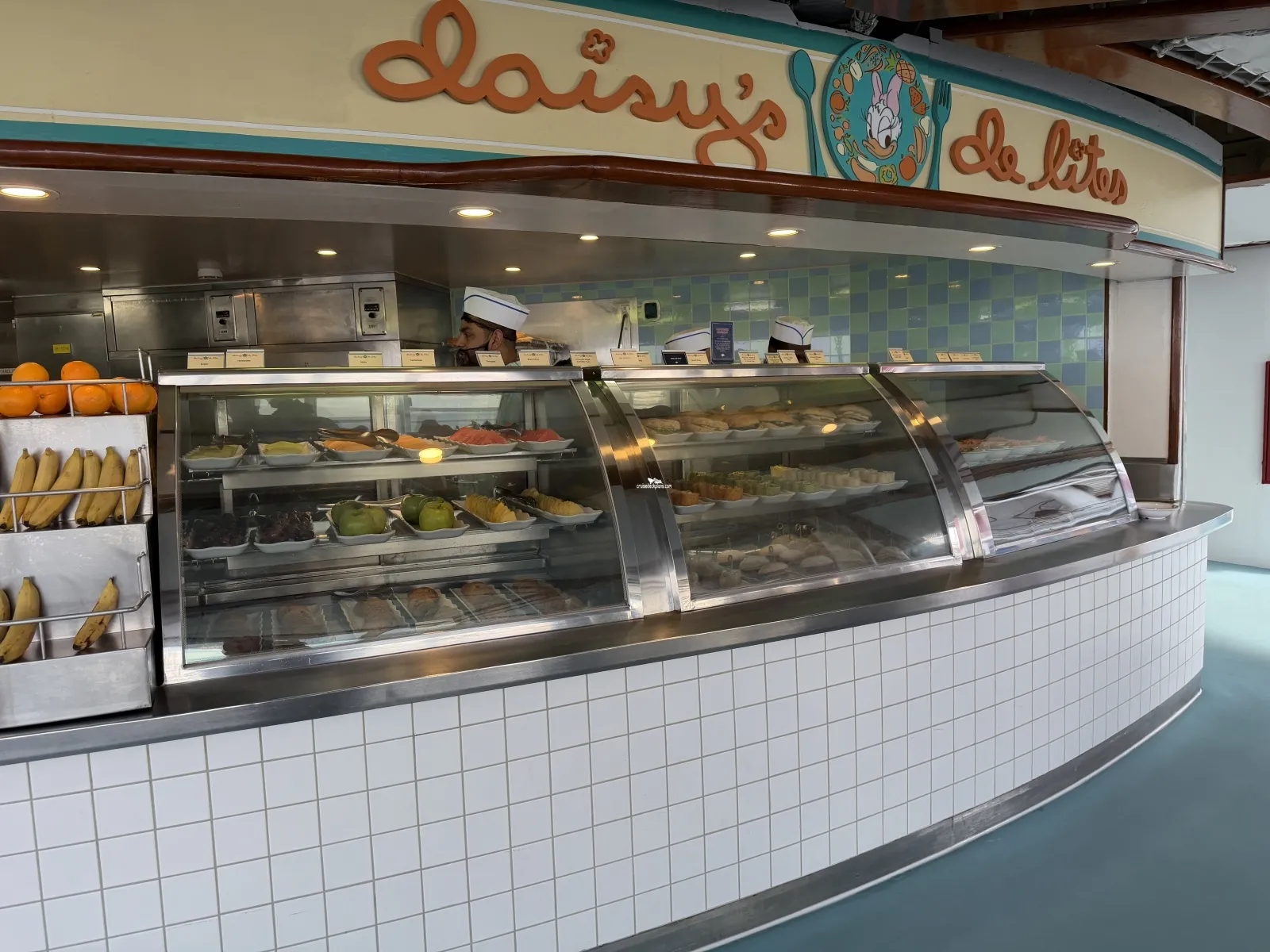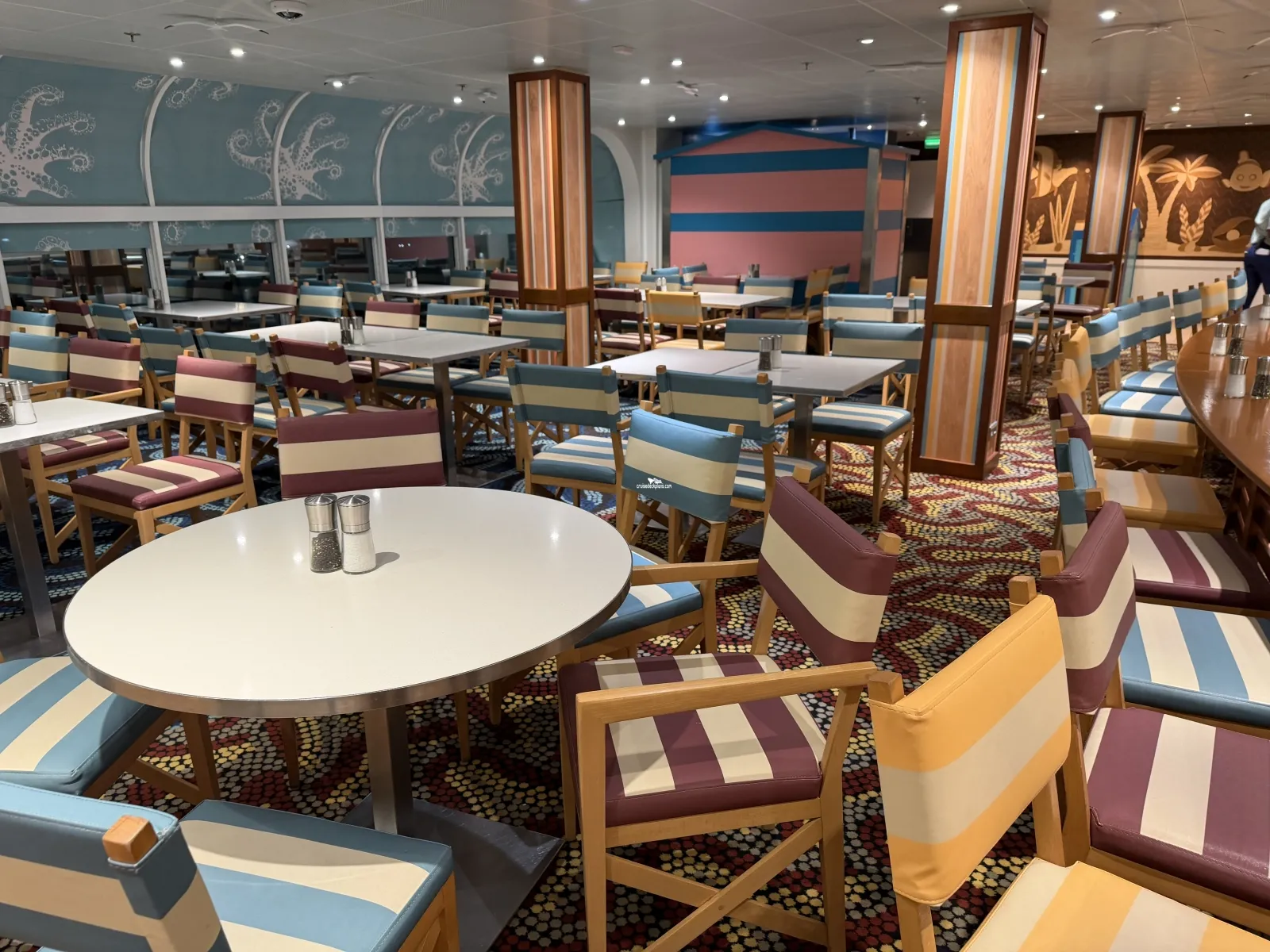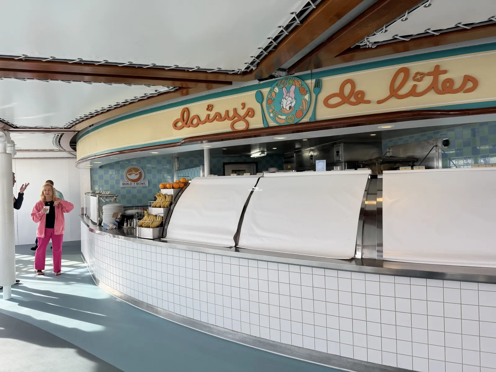 Featuring a portrait of Goofy on the pool floor and a maximum depth of 4 feet, Goofy's Pool lets parents and kids cool off and make new friends while onboard.Cove Cafe