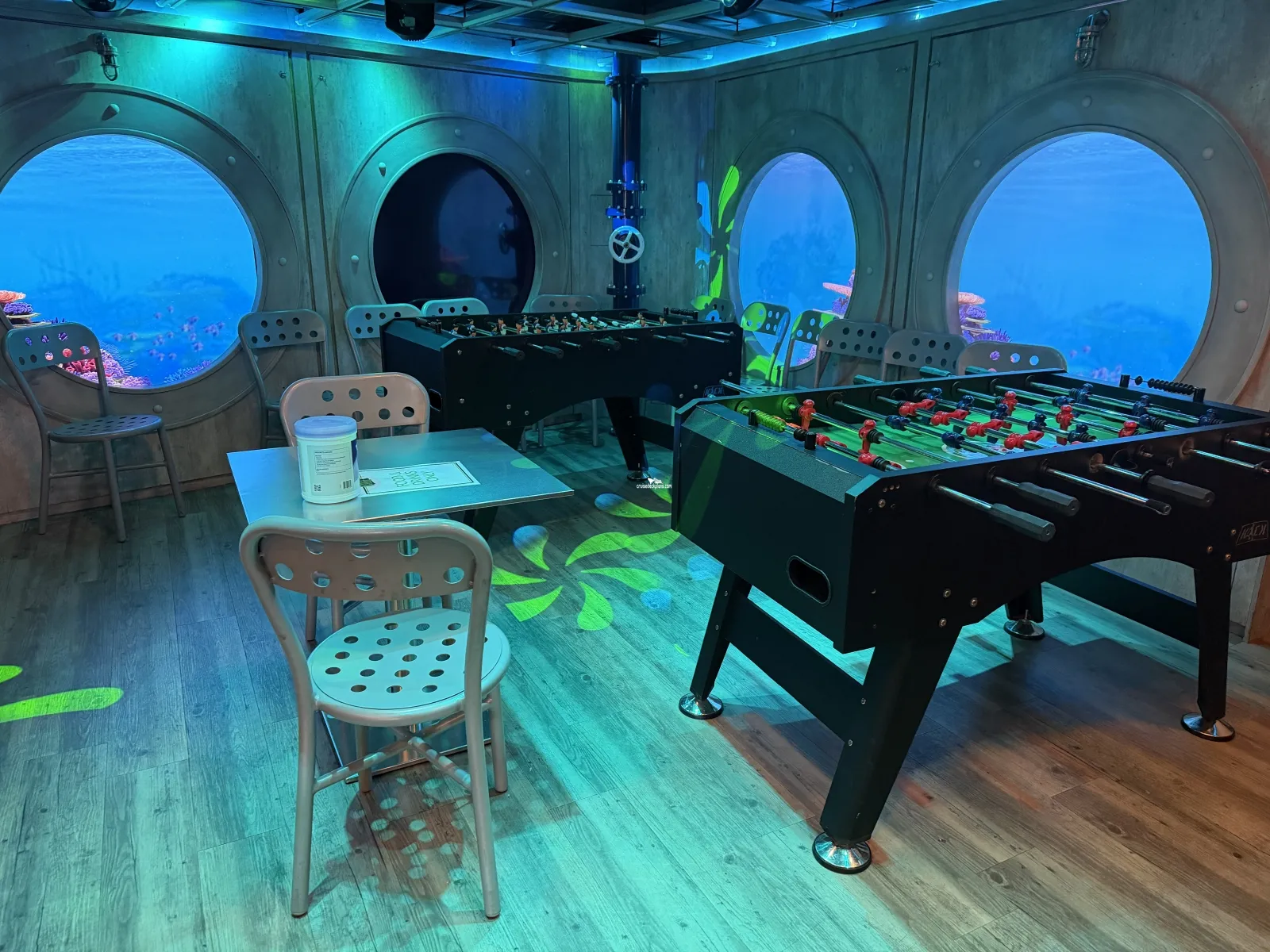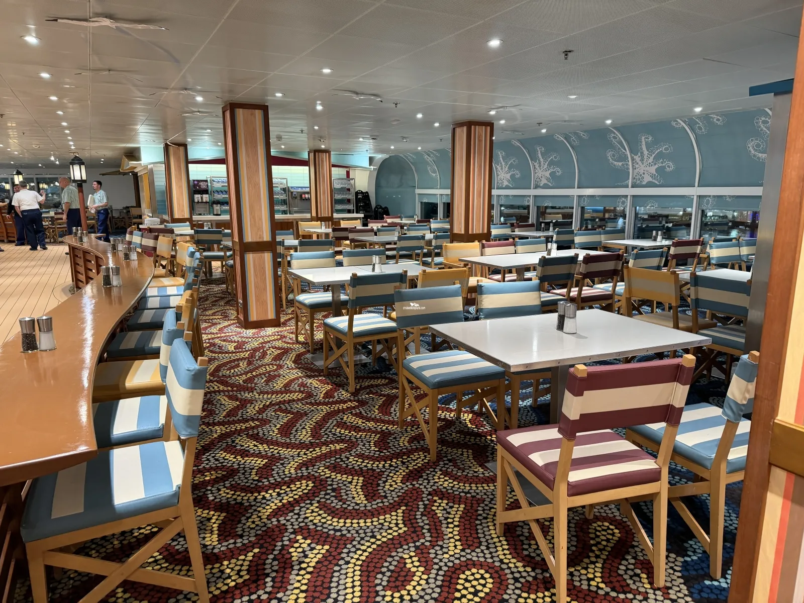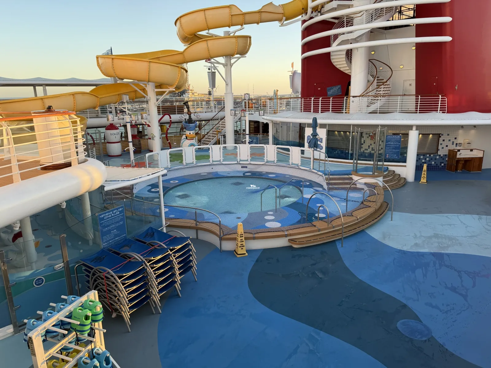 Featuring a portrait of Goofy on the pool floor and a maximum depth of 4 feet, Goofy's Pool lets parents and kids cool off and make new friends while onboard.Cove Cafe