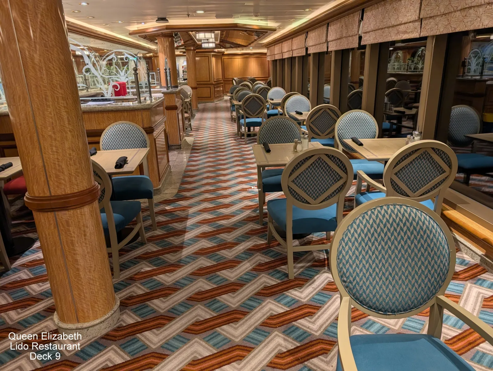 Cruisedeckplans provides full interactive deck plans for the Queen Elizabeth Deck 9 deck. Just move your mouse over any cabin and a pop up will appear with detail information, including a full description and floor layout, and a link to pictures and/or videos. These are the newest deck plans for Queen Elizabeth Deck 9 deck plan showing public venues and cabin numbers and locations.