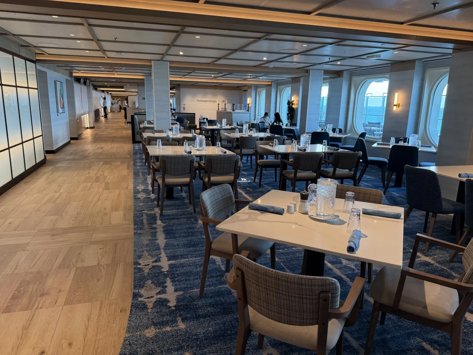 Buffet style food stations with both inside and outdoor seating. All-day gastronomy experience conveniently located adjacent to the Piazza with expansive windows overlooking the Promenade and designed for enhanced traffic flow, chefs serve breakfast, lunch, and dinner at nine food stations ranging from Mongolian barbeque and Tapas stations to Asian stir fry and Panini stations. There’s something for every guest at stops that feature carving boards of roasted meats, bread and salad selections, fruits, hot dishes, and desserts for every sweet toothThe Promenade