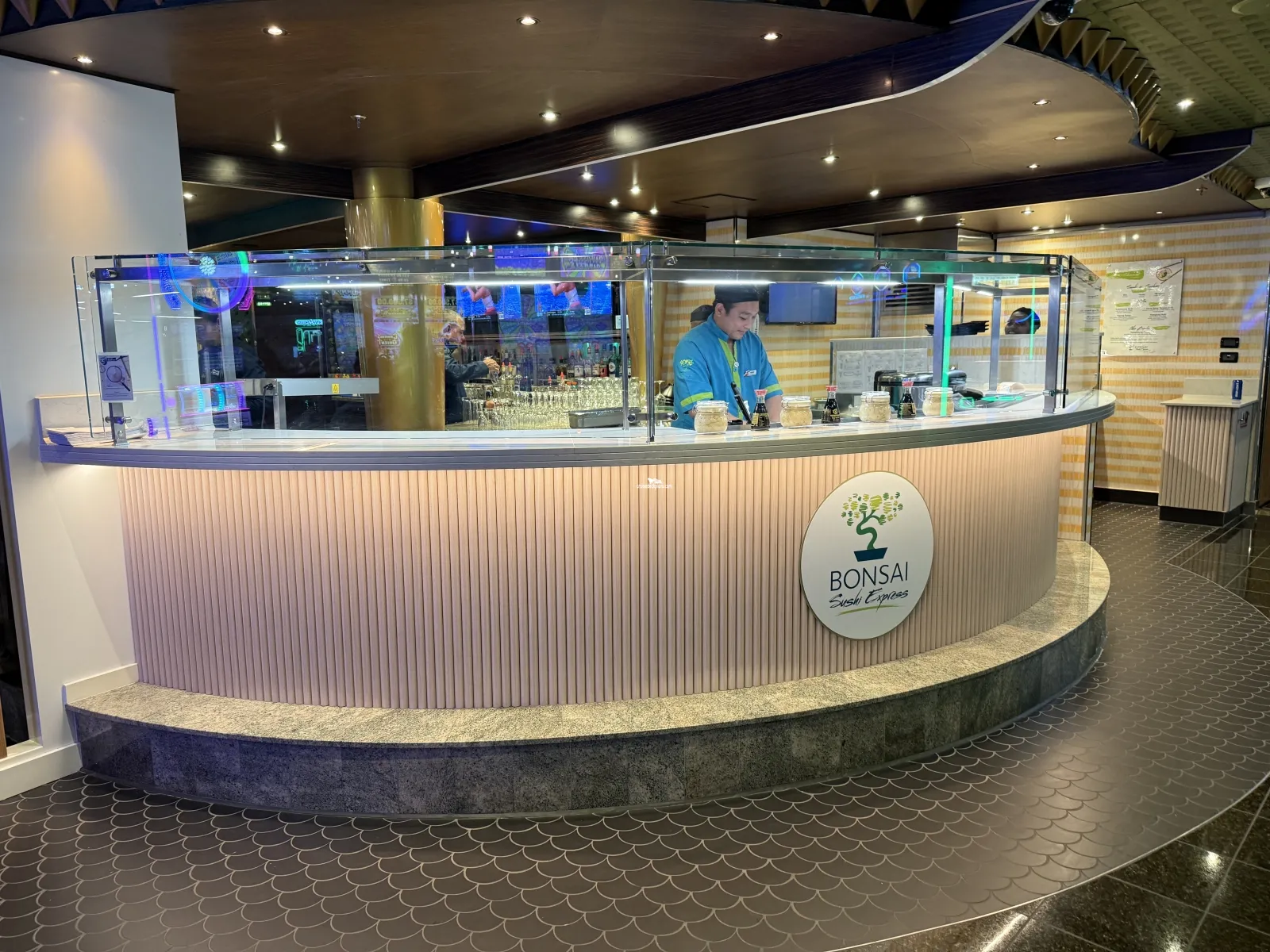 A casual, grab-and-go sushi source at sea, featuring a mouthwatering array of sushi, sashimi, rolls and more - all made fresh and packed up for easy eating anywhereCasino and Bar