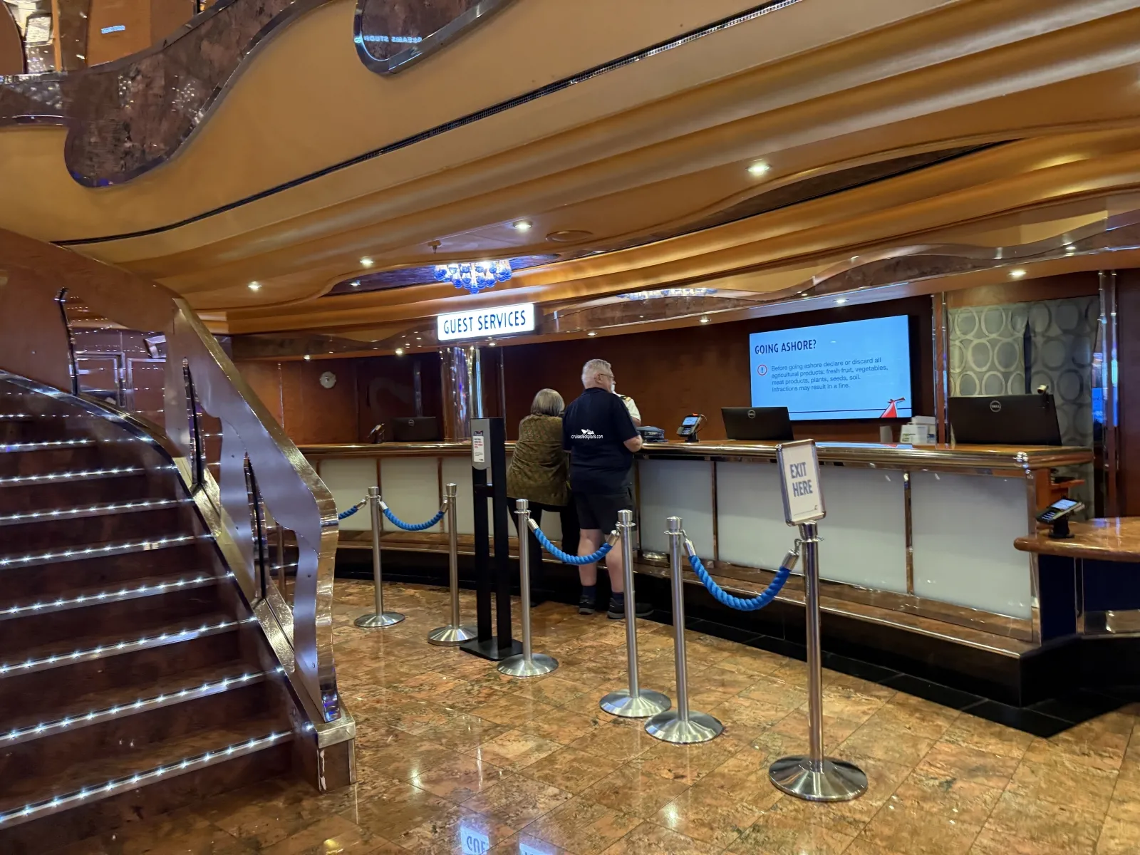 Shore Excursion Desk: Provides information and purchase of shore excursions and golf excursions ($). Provides information on ports-of-call. Provides information on our ships and itineraries and how to get the best deal on a future cruise (Future Cruise Vacation program $)Guest Services