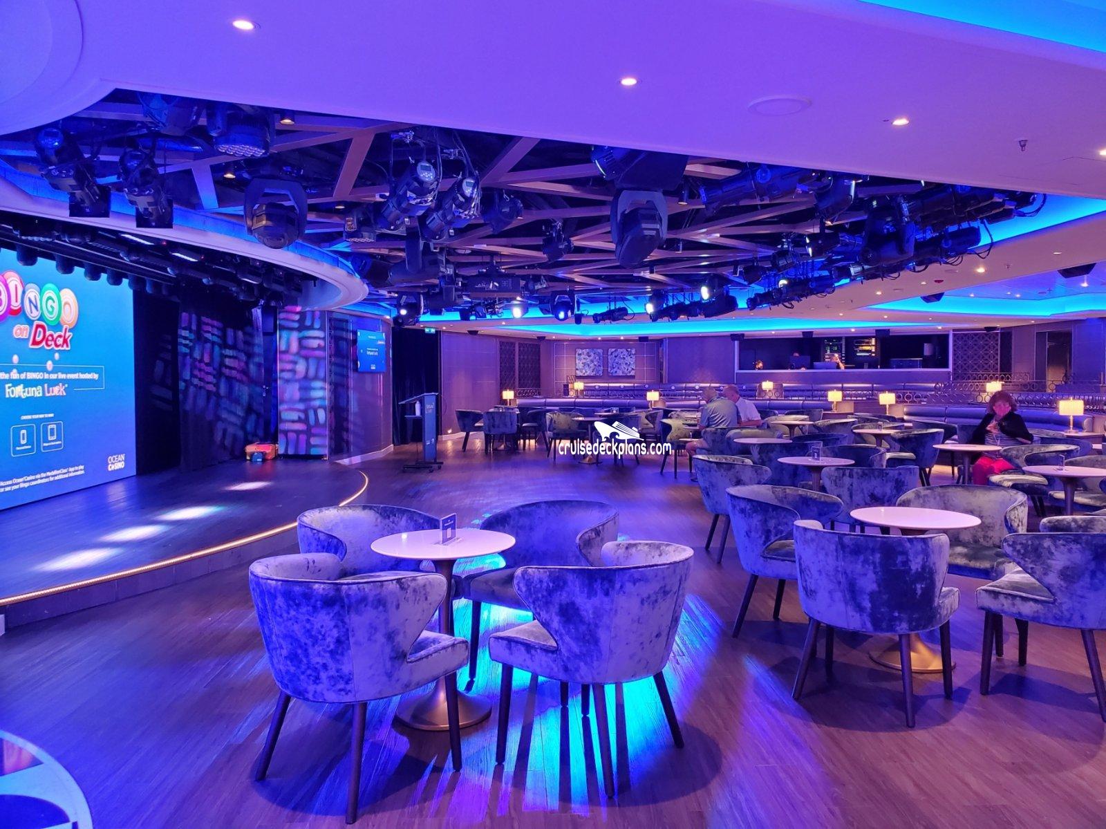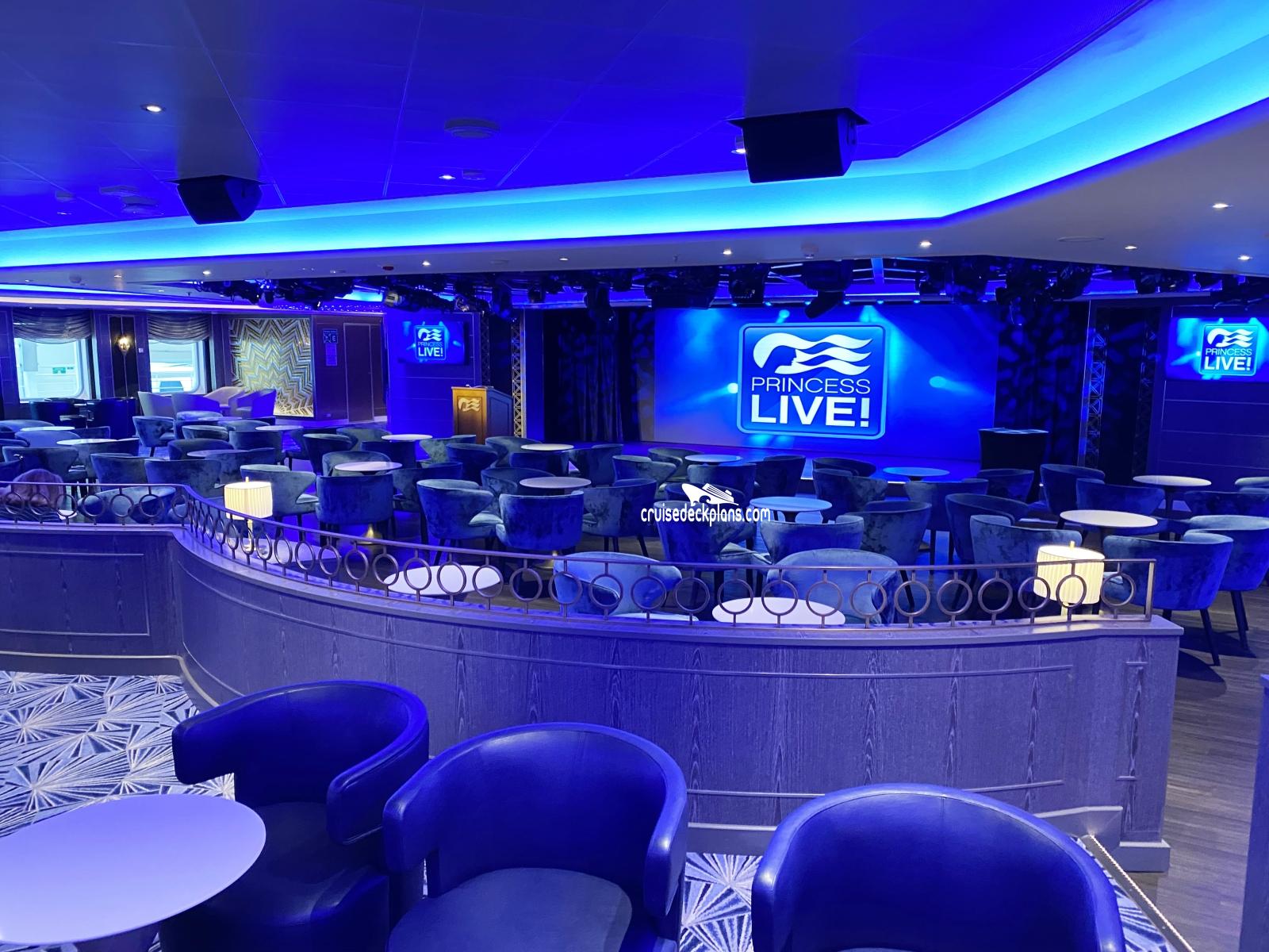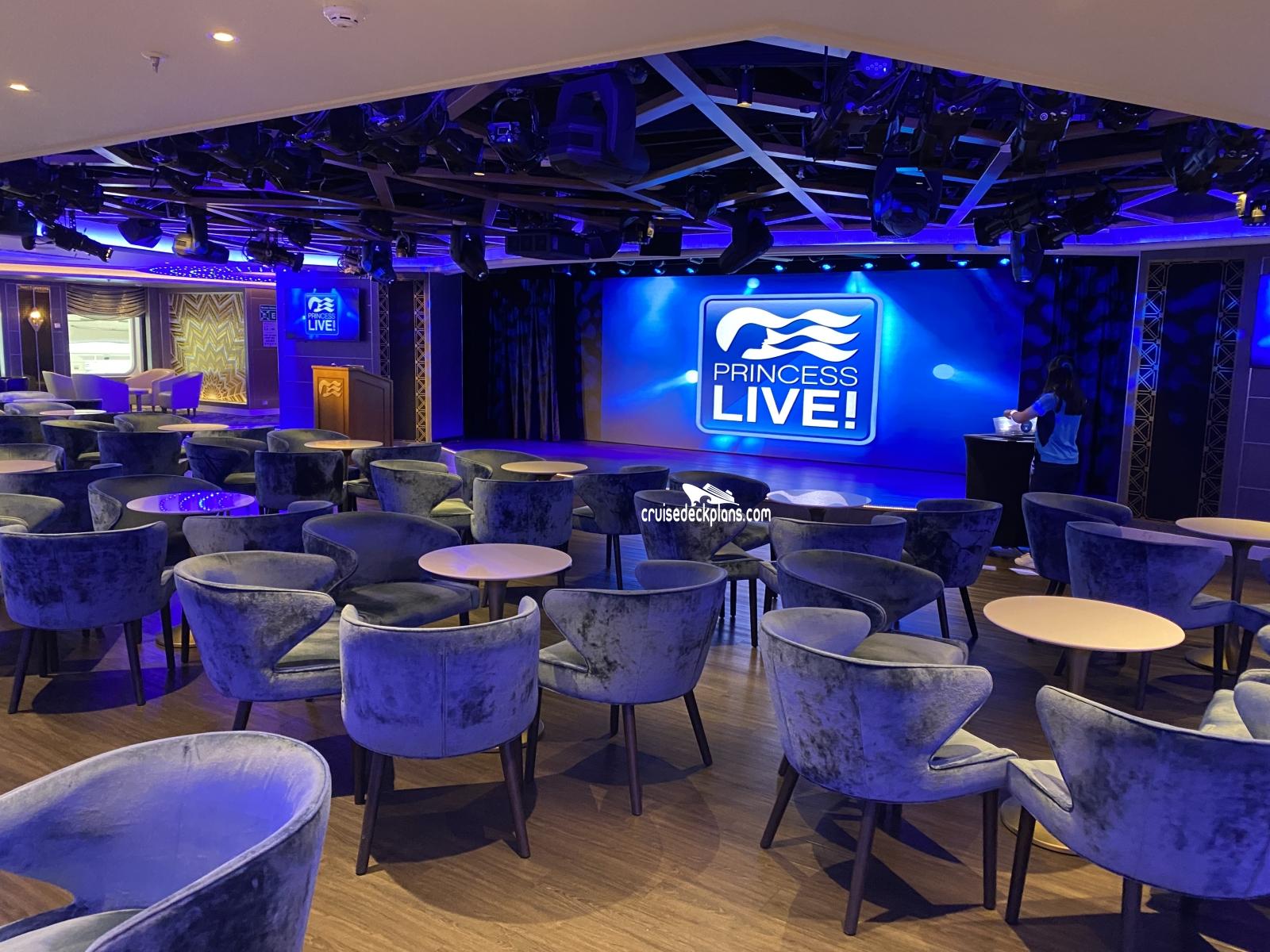 A TV studio where guests get the chance to experience what it feels like to be in the audience during the filming of TV shows. Princess' "The Wake" show will be filmed daily and broadcast to staterooms along with audience participation game shows which will also be broadcast to rooms the following day.