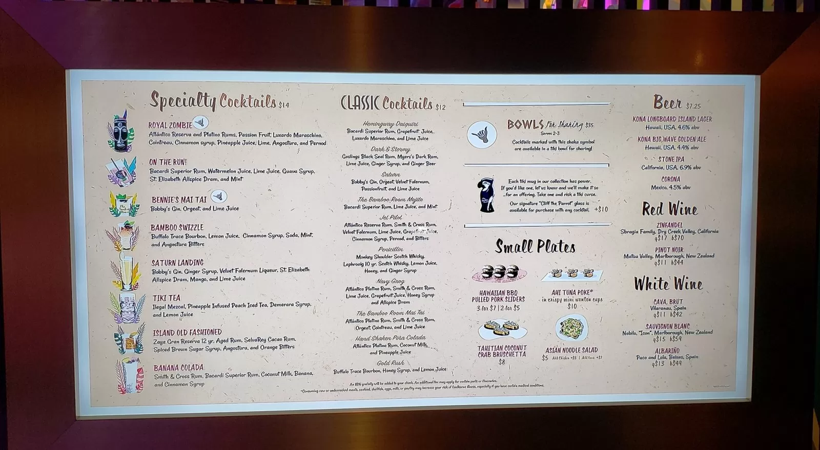 Bar and lounge with Polynesian theme. Handcrafted cocktails with exotic fruit and spices. Adults only.