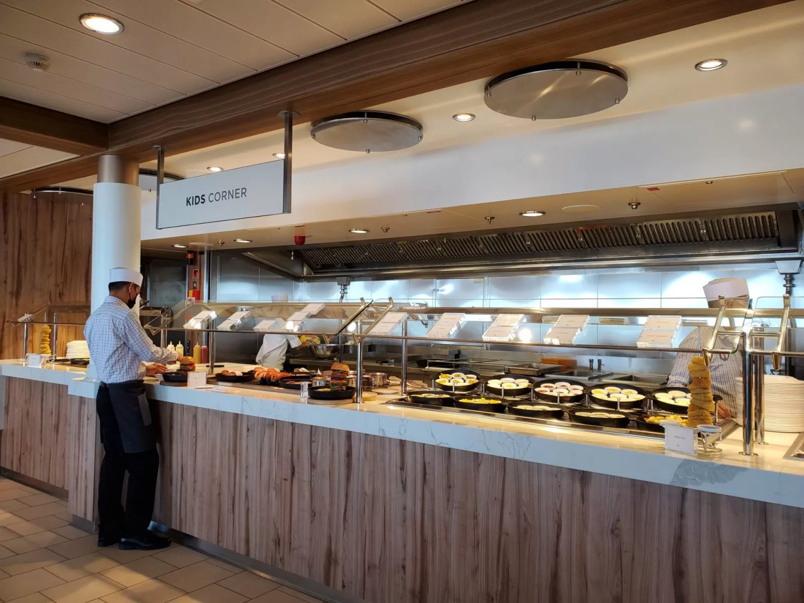 The ship's casual buffet-style venue that offers an array of delicious food for every meal and snack time.