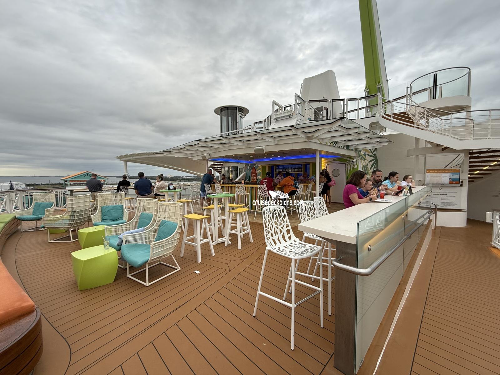 Bar serving Northstar and pool area. Two levels on deck 14 and deck 15.