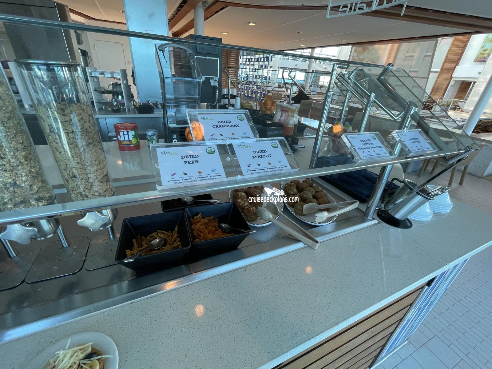 This page shows actual pictures for Celebrity Silhouette AquaSpa Cafe. Most of our pictures are contributed by actual cruisers. You will find that all the Celebrity Silhouette AquaSpa Cafe pictures on this page also posted directly onto our deck plans near the actual location the photo was taken. You can browse the pictures here or you can click on them as you are viewing the Celebrity Silhouette deck plans. For deck plan viewing click on the ship button above or scroll down to view the pictures on this page.