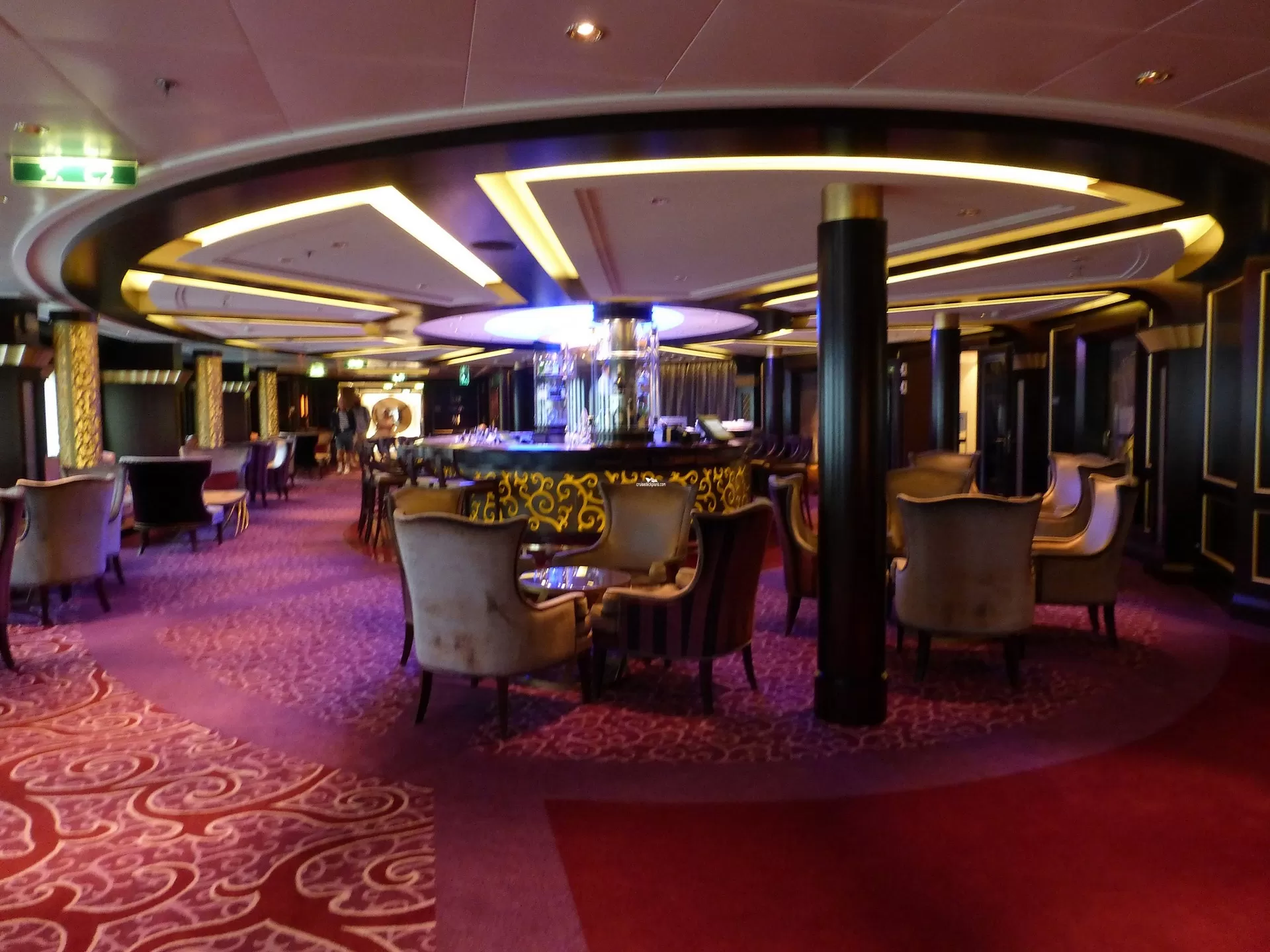 The gateway to the ship's four specialty restaurants with its "dressed for dinner" gathering, is the ideal place for a drink before or after dining featuring live musical entertainment.