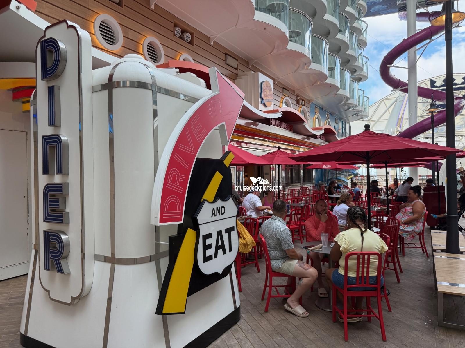 This page shows actual pictures for Wonder of the Seas Johnny Rockets. Most of our pictures are contributed by actual cruisers. You will find that all the Wonder of the Seas Johnny Rockets pictures on this page also posted directly onto our deck plans near the actual location the photo was taken. You can browse the pictures here or you can click on them as you are viewing the Wonder of the Seas deck plans. For deck plan viewing click on the ship button above or scroll down to view the pictures on this page.