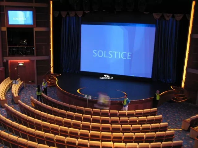 This page shows actual pictures for Celebrity Solstice Solstice Theater. Most of our pictures are contributed by actual cruisers. You will find that all the Celebrity Solstice Solstice Theater pictures on this page also posted directly onto our deck plans near the actual location the photo was taken. You can browse the pictures here or you can click on them as you are viewing the Celebrity Solstice deck plans. For deck plan viewing click on the ship button above or scroll down to view the pictures on this page.