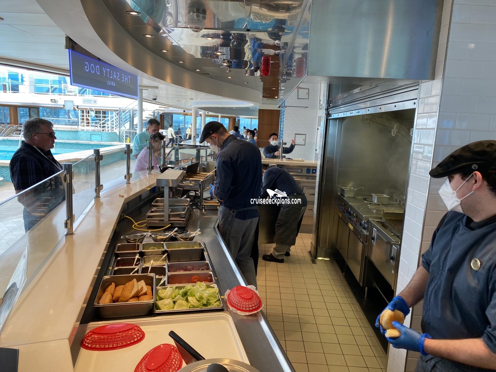 This page shows actual pictures for Enchanted Princess Salty Dog Grill. Most of our pictures are contributed by actual cruisers. You will find that all the Enchanted Princess Salty Dog Grill pictures on this page also posted directly onto our deck plans near the actual location the photo was taken. You can browse the pictures here or you can click on them as you are viewing the Enchanted Princess deck plans. For deck plan viewing click on the ship button above or scroll down to view the pictures on this page.