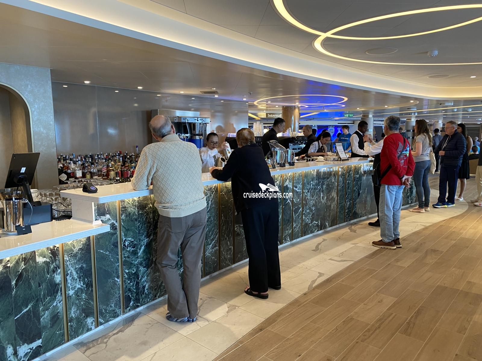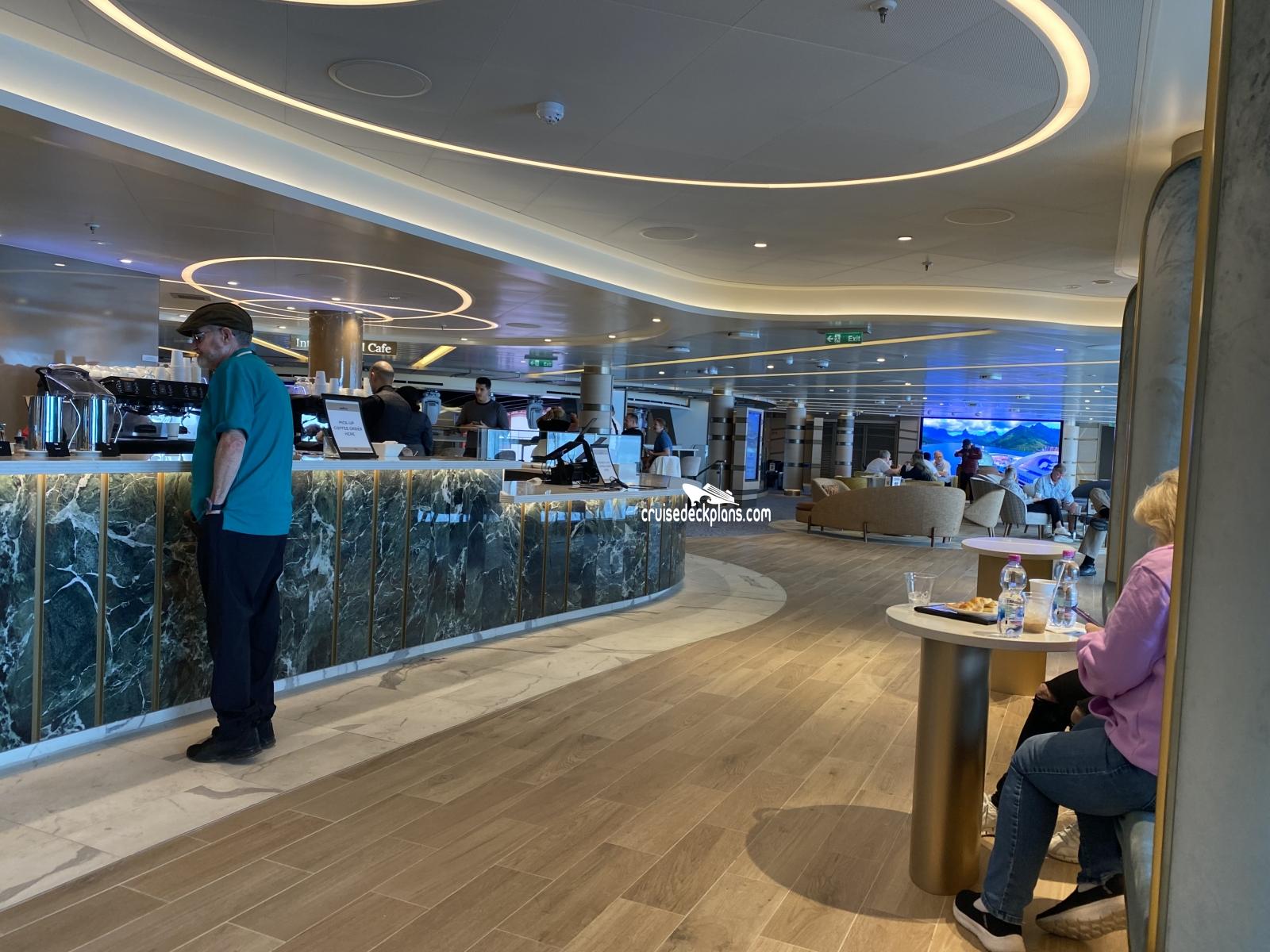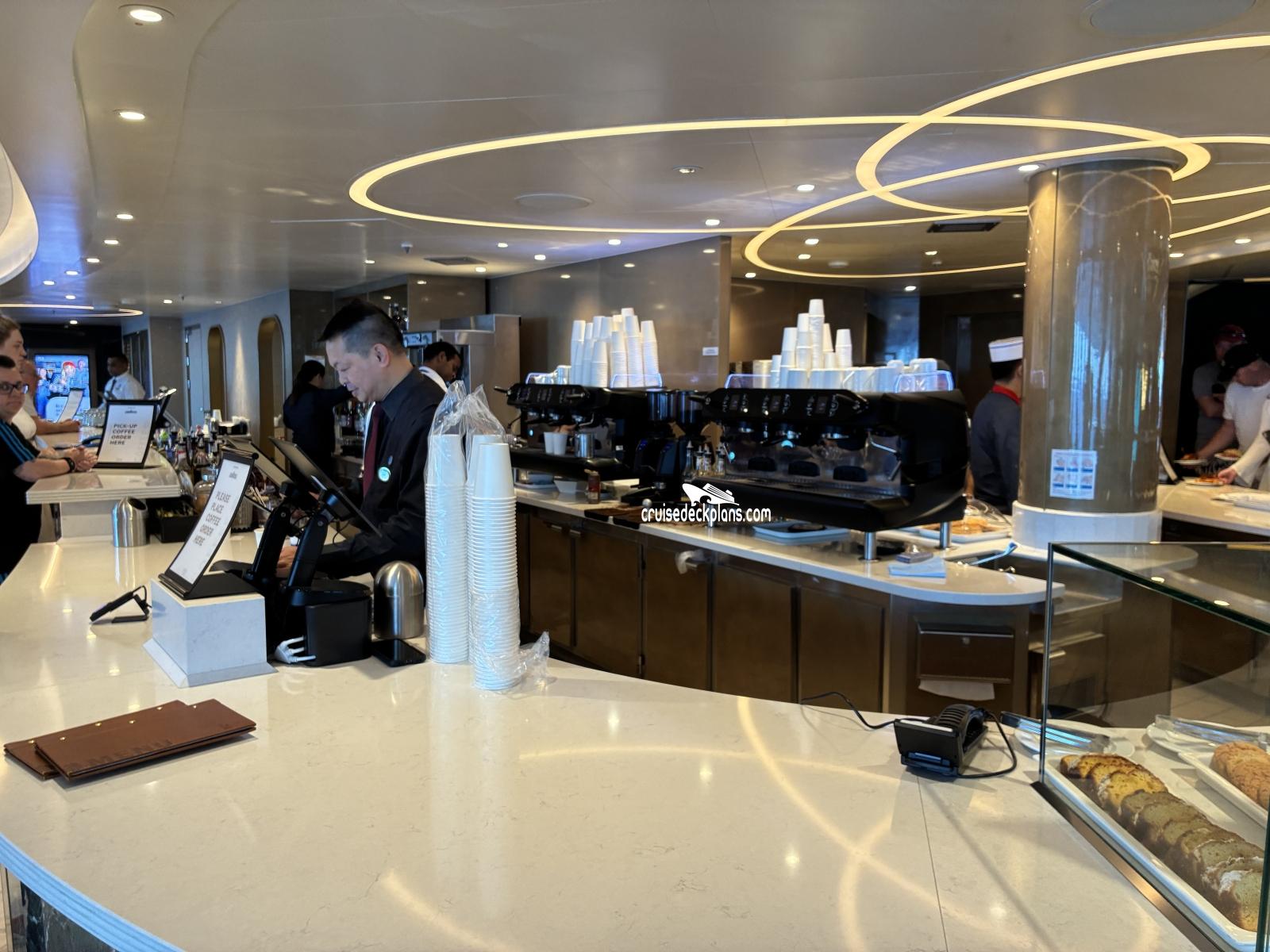 Bar serving specialty coffees and food located on starboard side of Deck 9 off the main Atrium