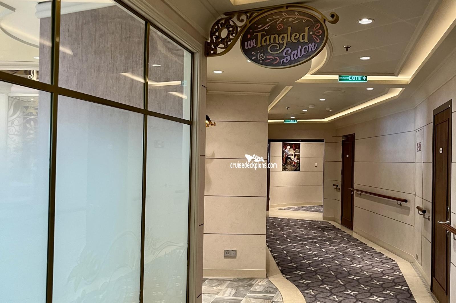 This page shows actual pictures for Disney Wish Untangled Salon. Most of our pictures are contributed by actual cruisers. You will find that all the Disney Wish Untangled Salon pictures on this page also posted directly onto our deck plans near the actual location the photo was taken. You can browse the pictures here or you can click on them as you are viewing the Disney Wish deck plans. For deck plan viewing click on the ship button above or scroll down to view the pictures on this page.