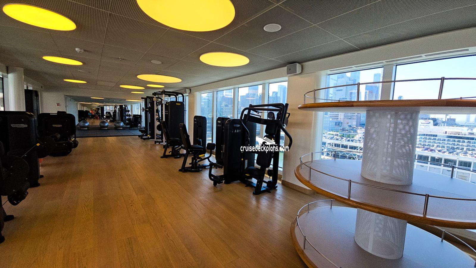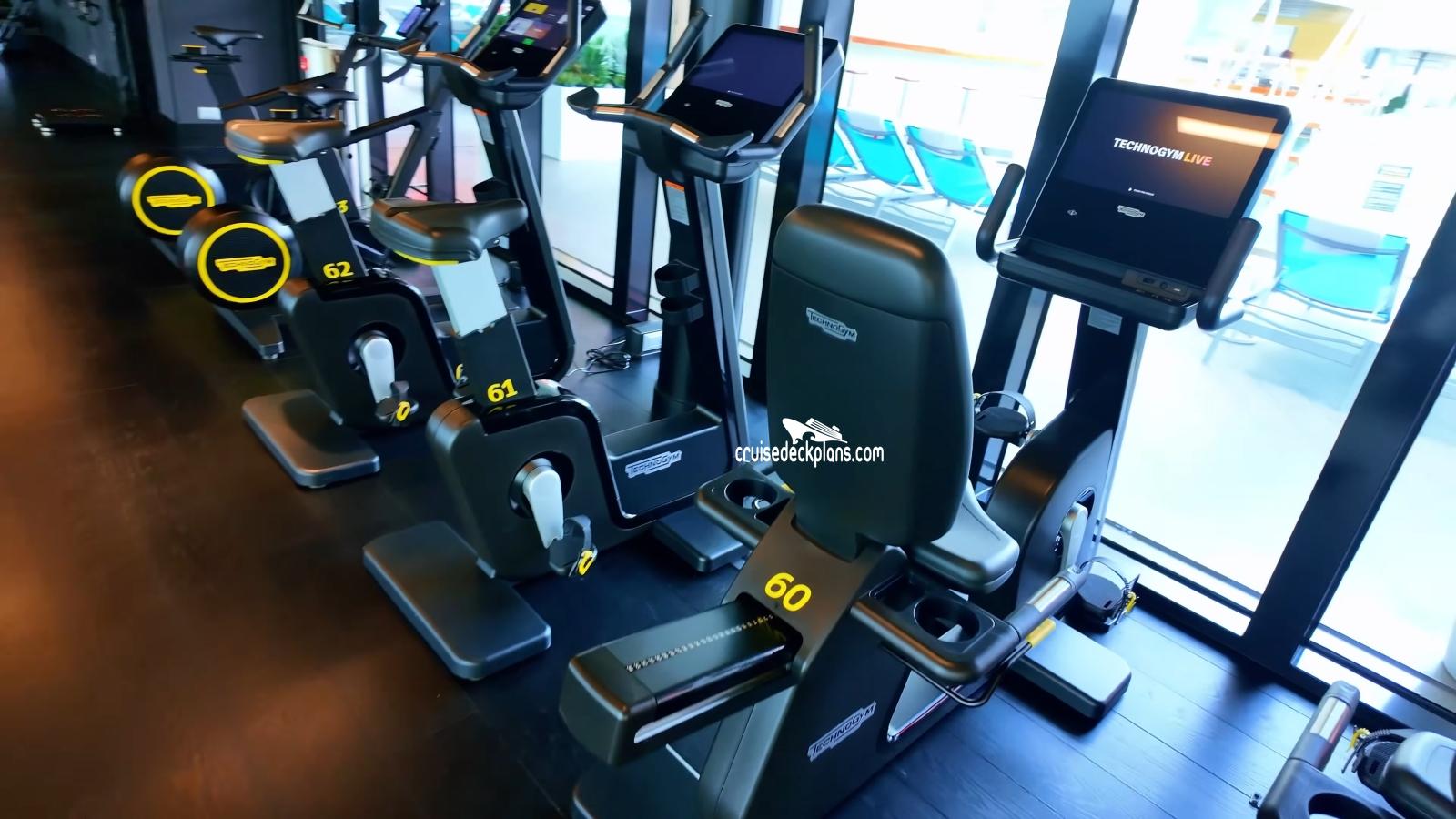 Fitness Area. On port side is Burn and Bike Gym with focus on a Bike Studio. On the starboard side is Build and Balance Gym with a focus on Balance Studio.