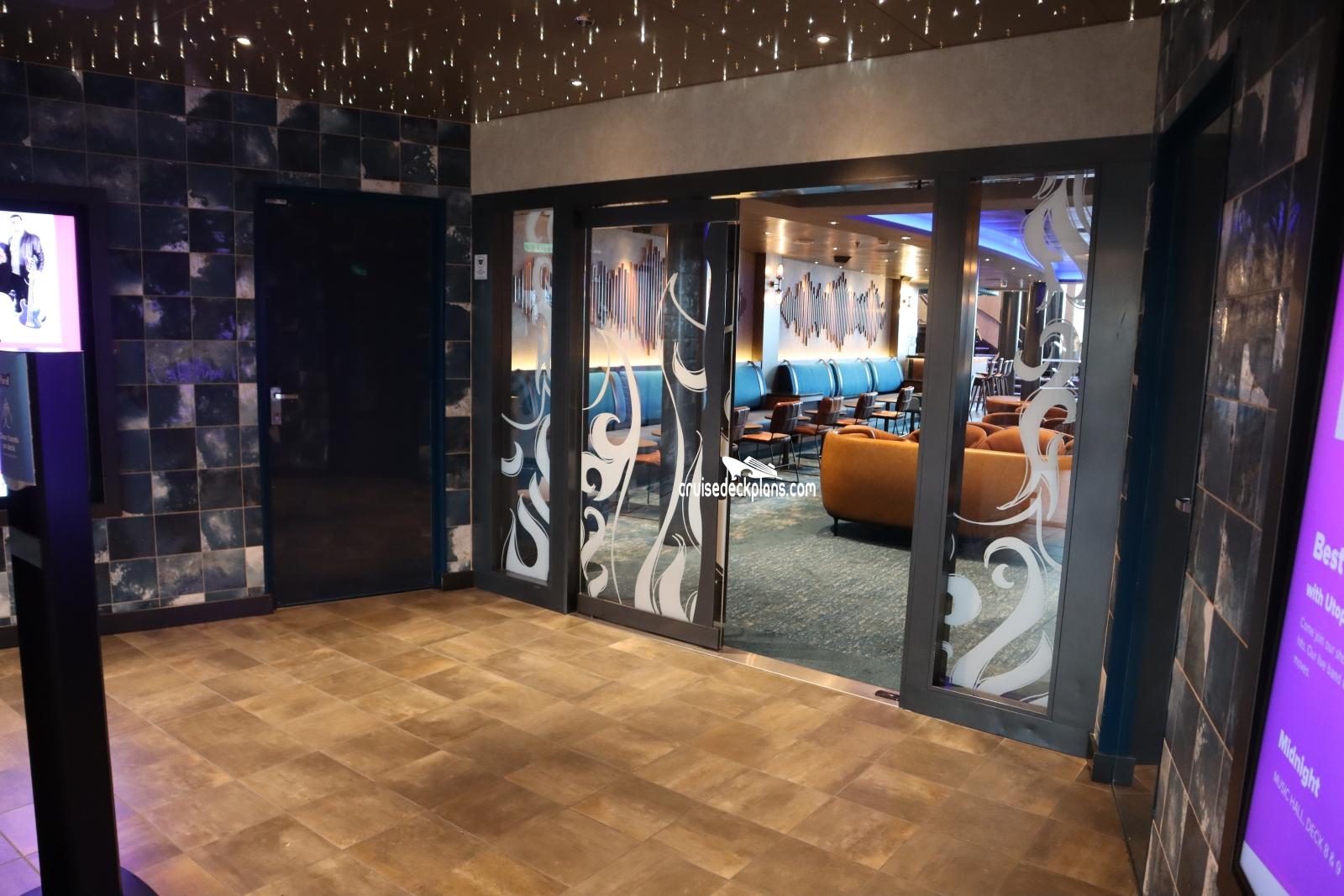This page shows actual pictures for Utopia of the Seas Music Hall. Most of our pictures are contributed by actual cruisers. You will find that all the Utopia of the Seas Music Hall pictures on this page also posted directly onto our deck plans near the actual location the photo was taken. You can browse the pictures here or you can click on them as you are viewing the Utopia of the Seas deck plans. For deck plan viewing click on the ship button above or scroll down to view the pictures on this page.