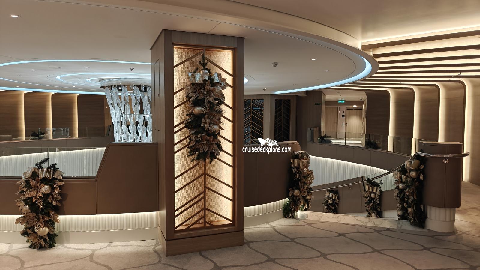 This page shows actual pictures for Oceania Allura Upper Hall. Most of our pictures are contributed by actual cruisers. You will find that all the Oceania Allura Upper Hall pictures on this page also posted directly onto our deck plans near the actual location the photo was taken. You can browse the pictures here or you can click on them as you are viewing the Oceania Allura deck plans. For deck plan viewing click on the ship button above or scroll down to view the pictures on this page.