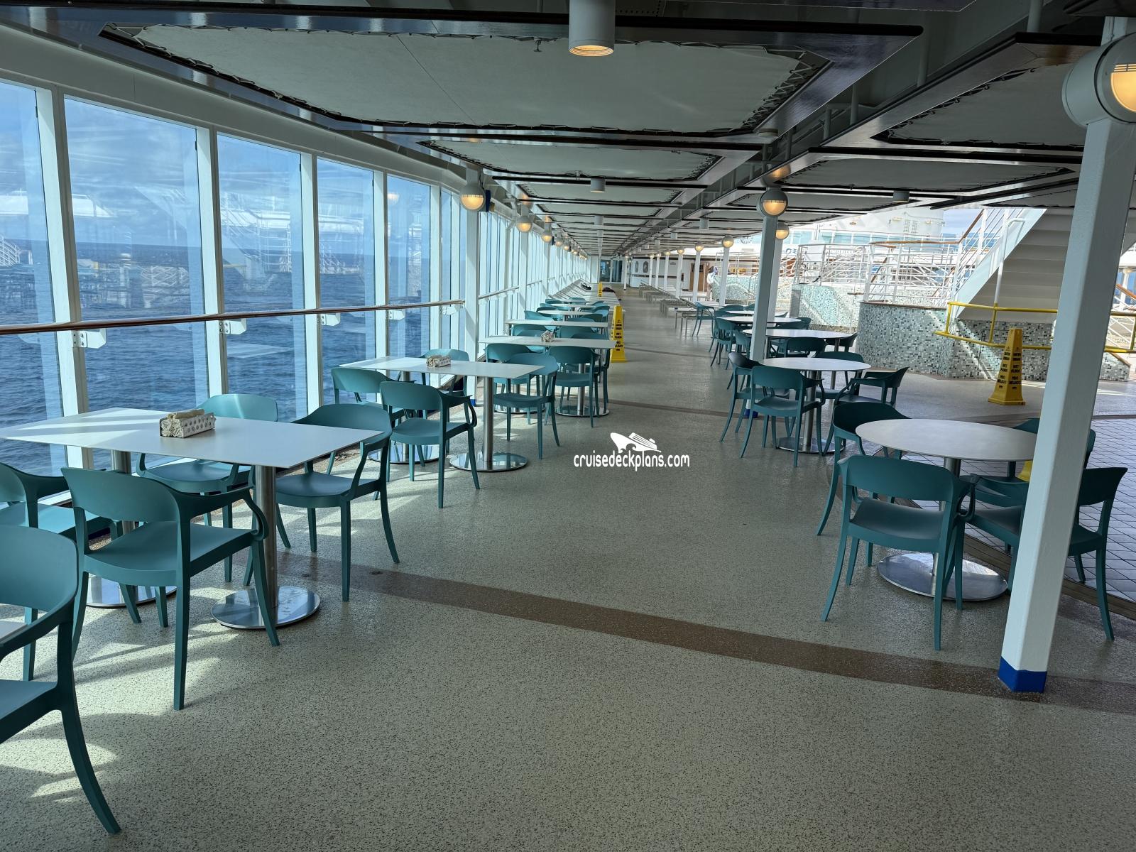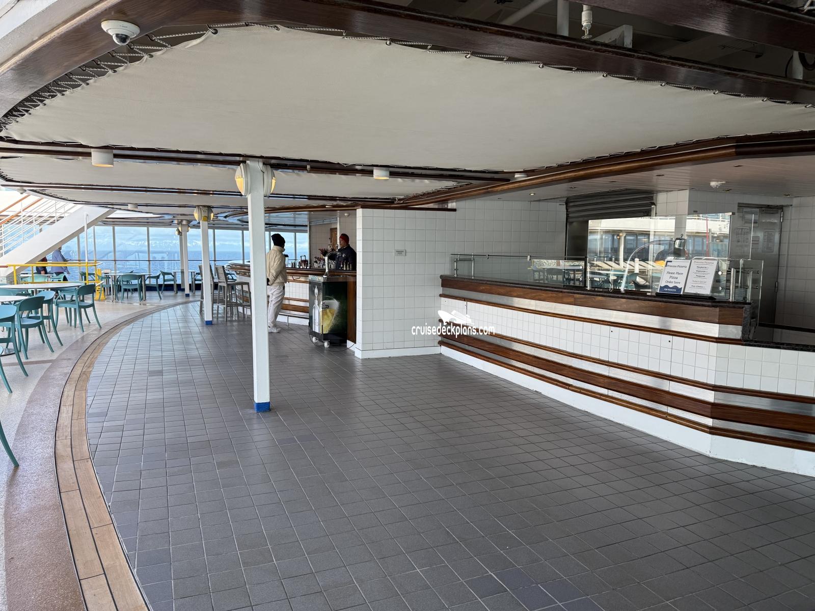 Coral Princess Princess Pizzeria is located on Lido (deck). We have provided the deck plan image for your reference.