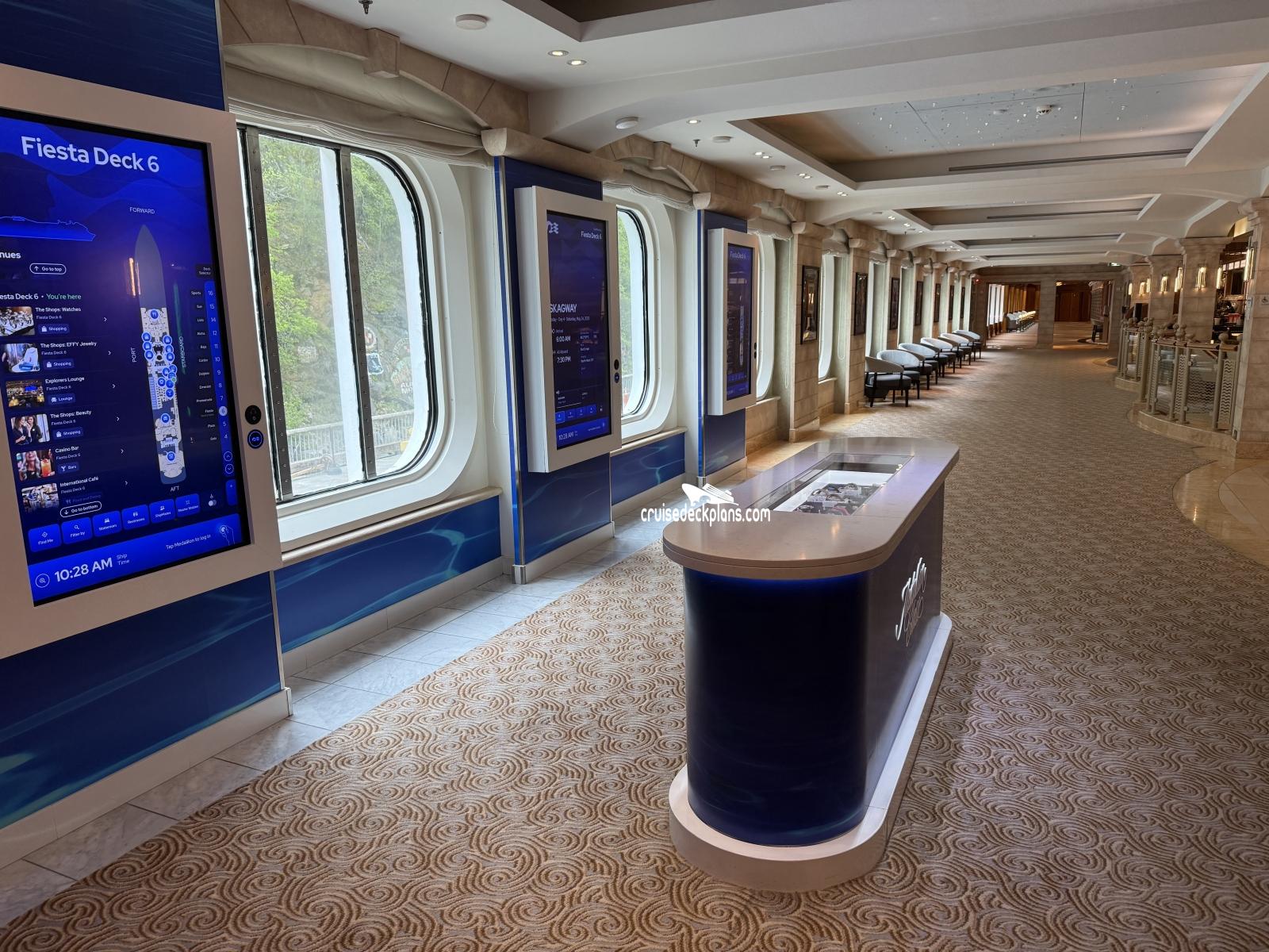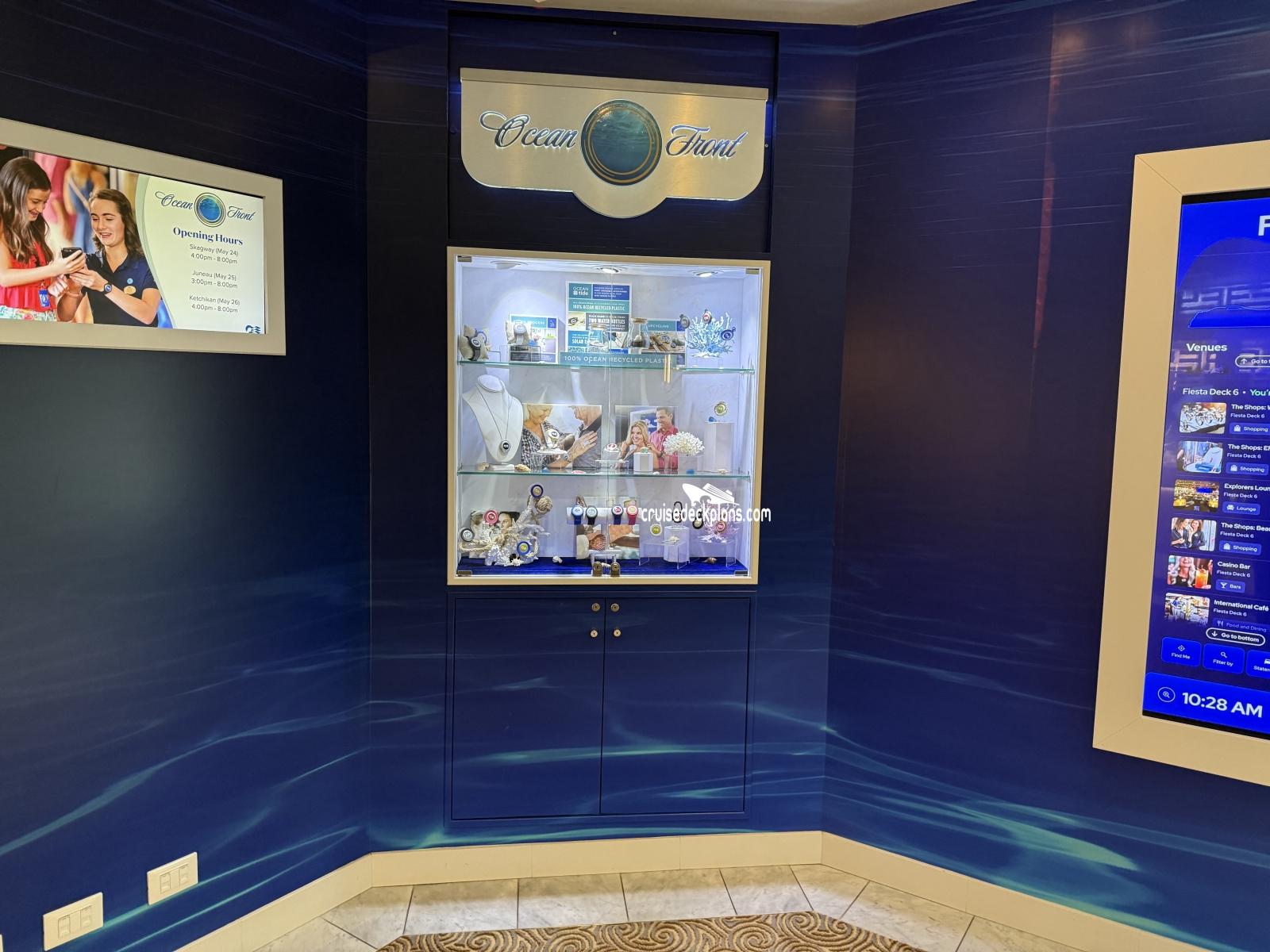 Coral Princess Ocean Front is located on Fiesta (deck). We have provided the deck plan image for your reference.