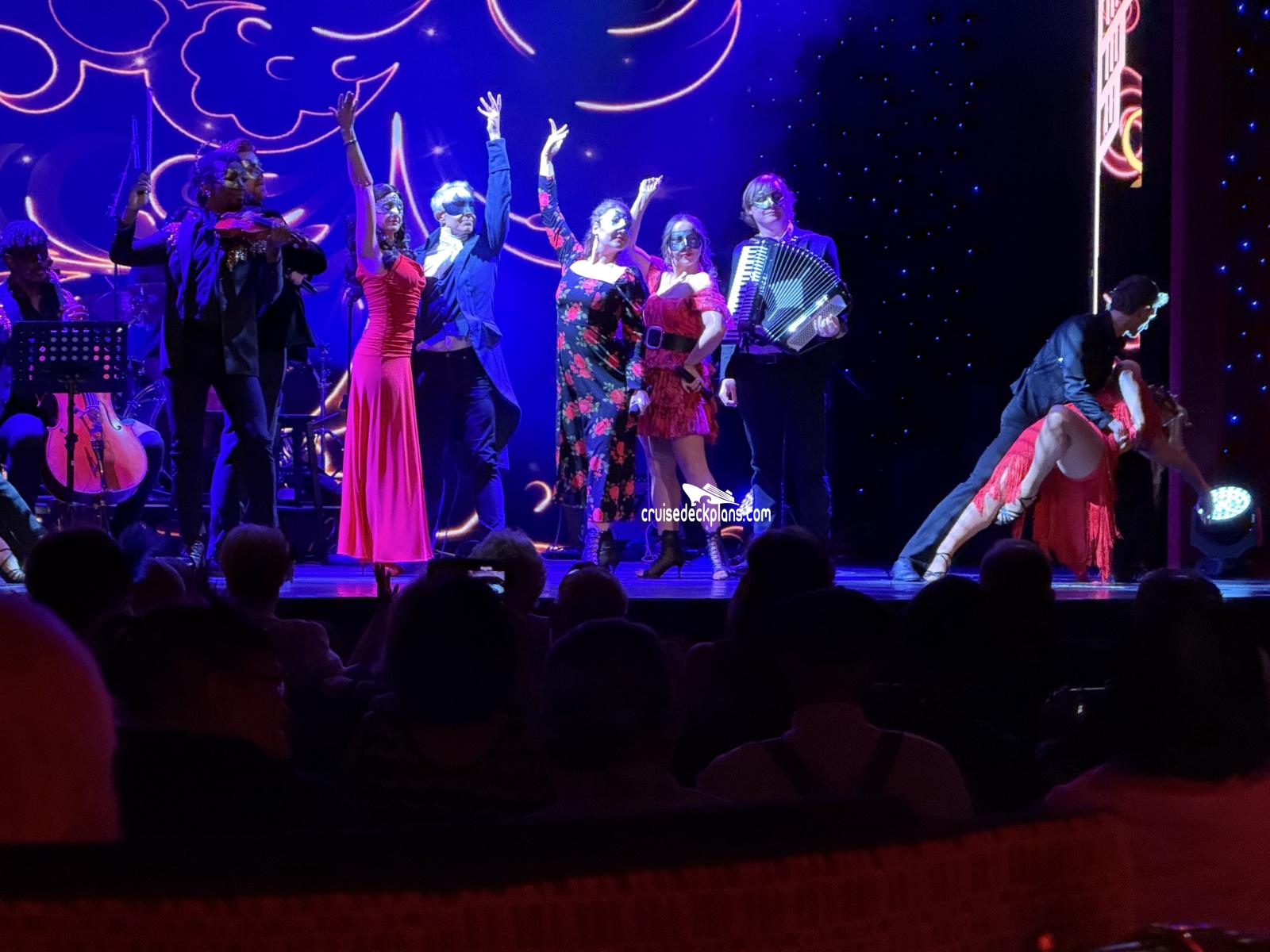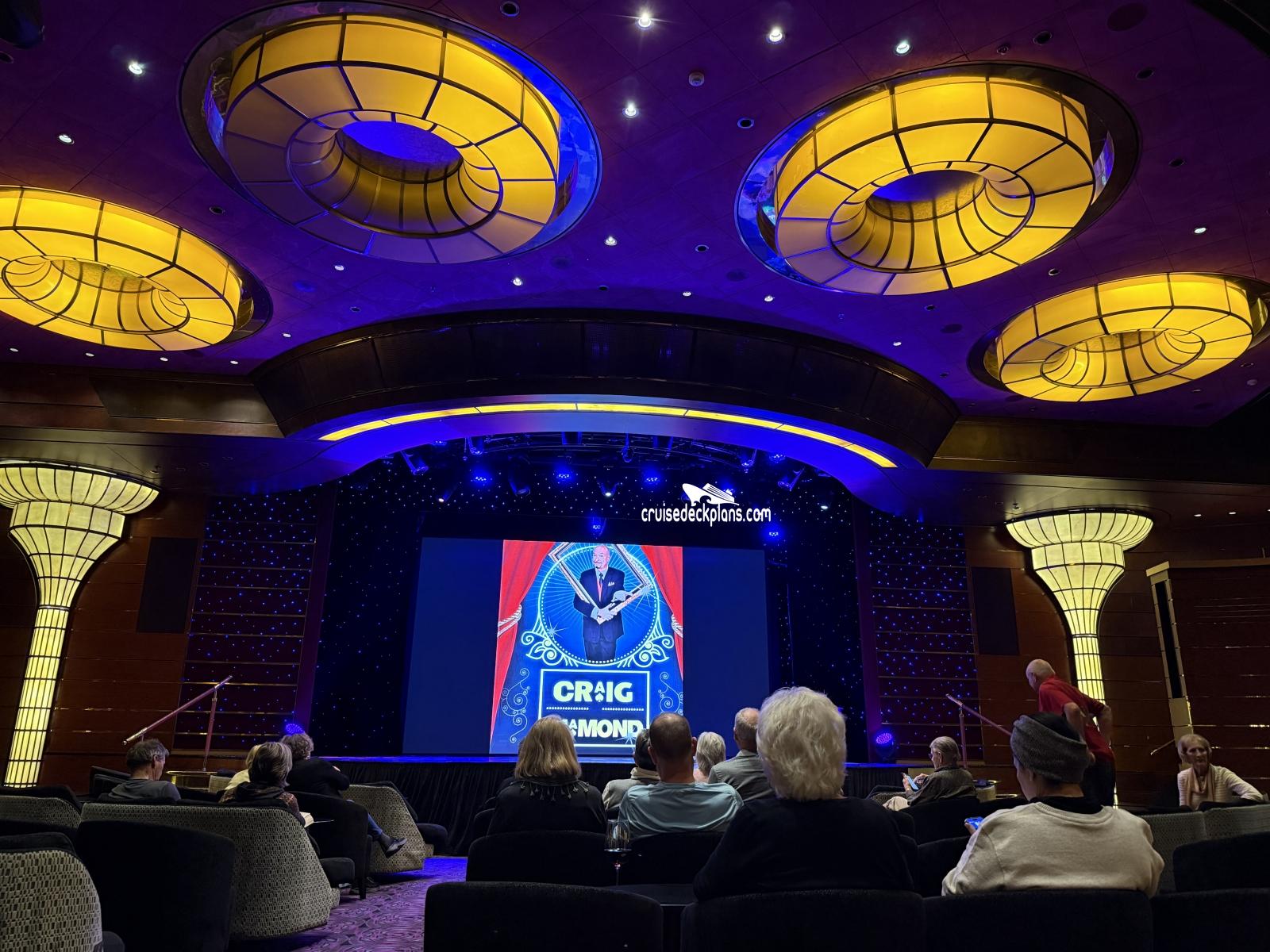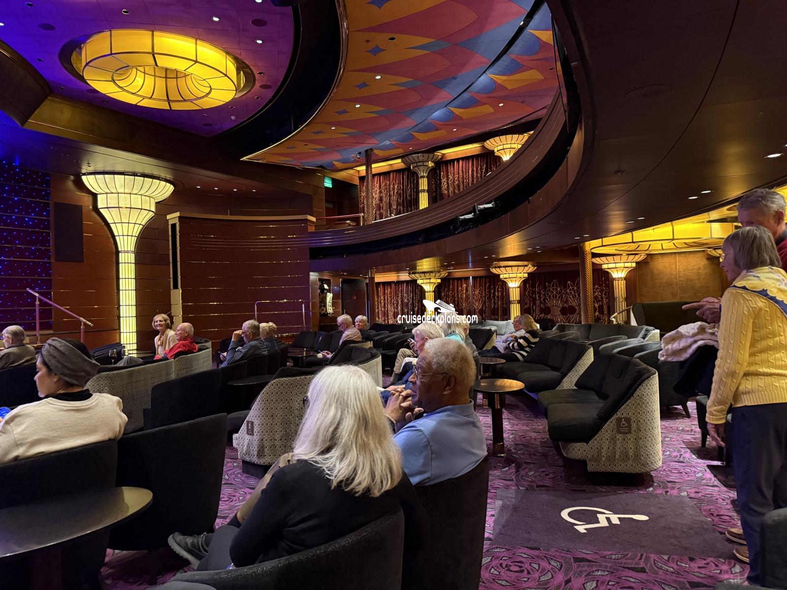 Two story main show lounge on forward part of ship.