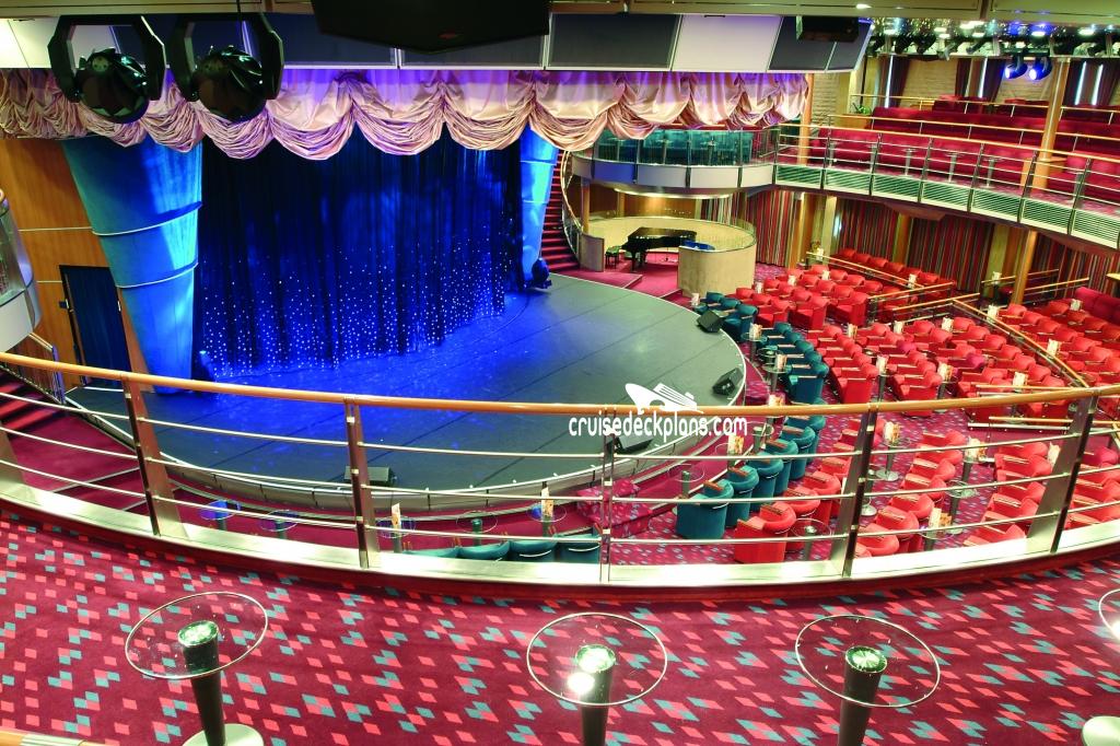 The ship's 2 level theater that plays host to the ship's main show productions featuring dancers, singers and acrobats.