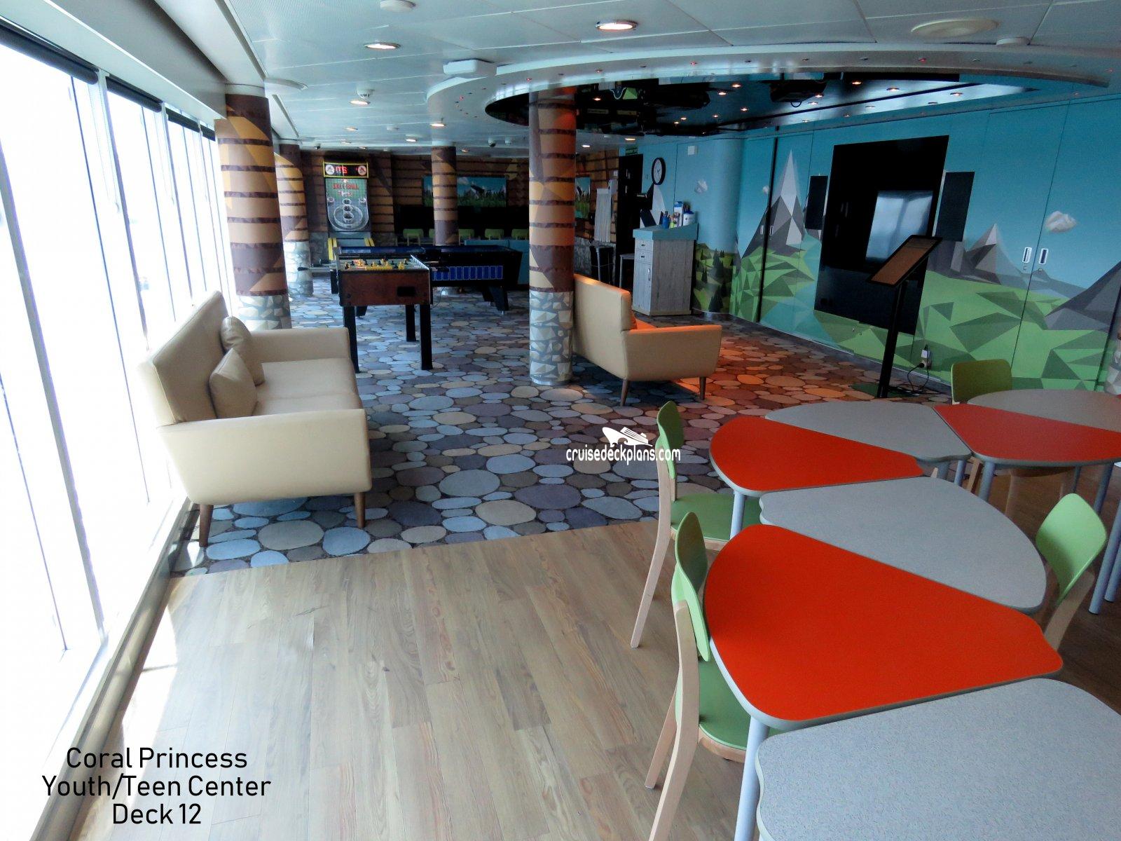 Coral Princess Youth Center is located on Aloha (deck). We have provided the deck plan image for your reference.