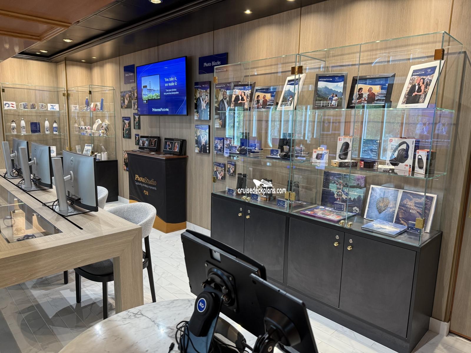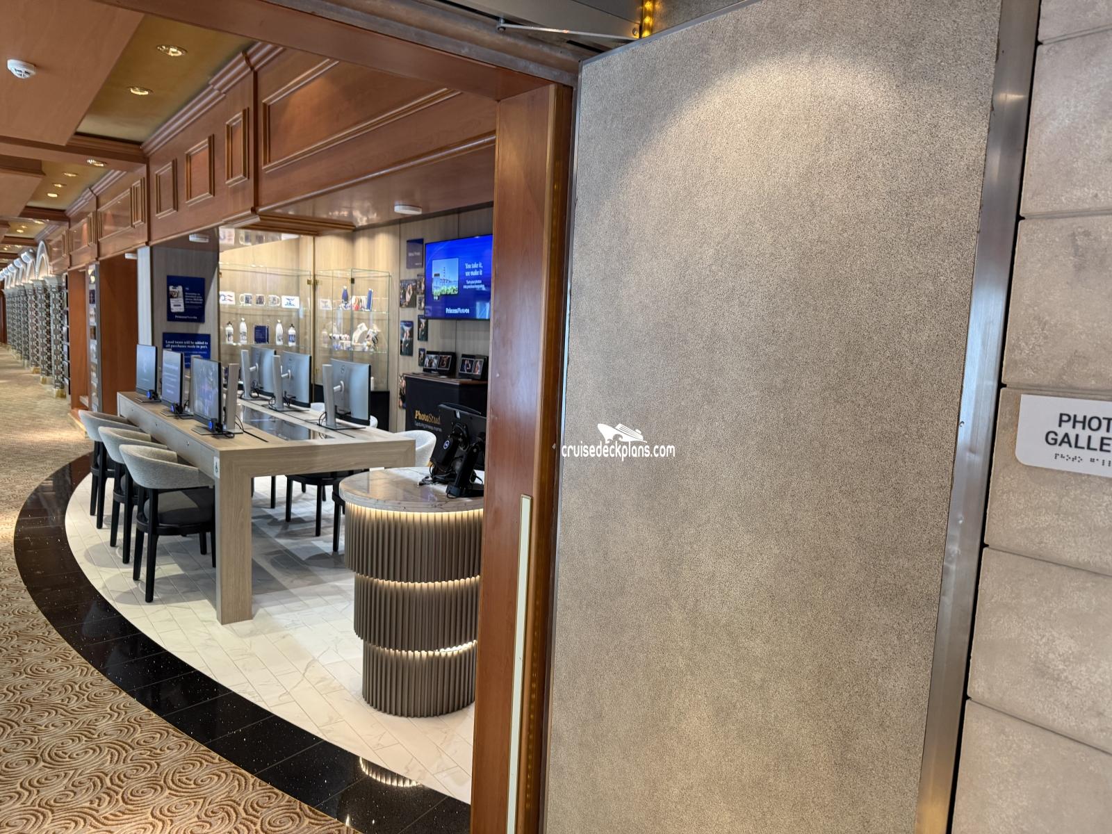 Displays official photos taken by the ship's onboard photographer for guests to peruse and purchase if so desired.