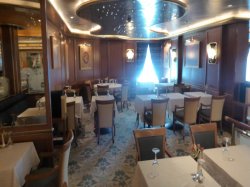 The ship's traditional dining room allowing guests to eat at the same time and table each evening with either an early option of 6pm or late option of 8:15pm.