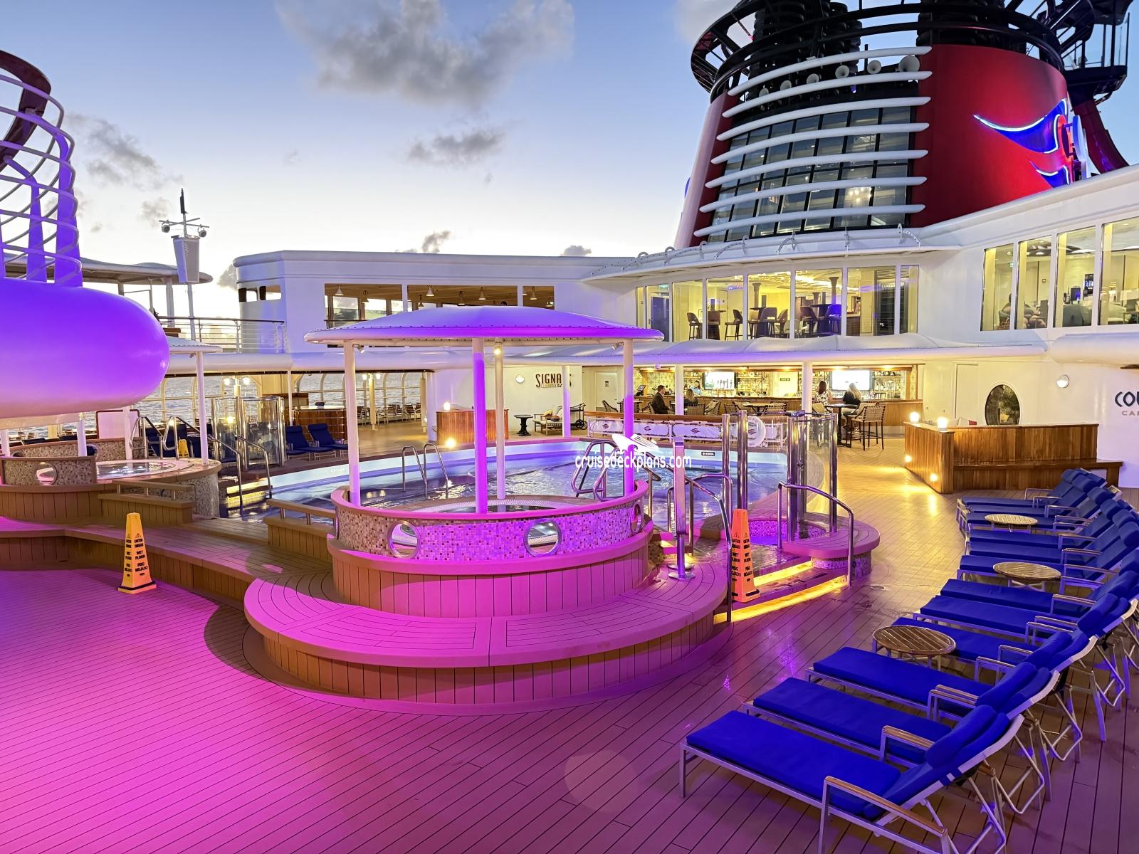 This page shows actual pictures for Disney Magic Quiet Cove Pool. Most of our pictures are contributed by actual cruisers. You will find that all the Disney Magic Quiet Cove Pool pictures on this page also posted directly onto our deck plans near the actual location the photo was taken. You can browse the pictures here or you can click on them as you are viewing the Disney Magic deck plans. For deck plan viewing click on the ship button above or scroll down to view the pictures on this page.