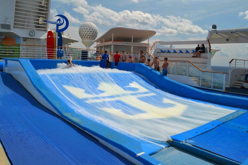 The ships surf simulator where guests can try out boogie boarding or surfing.