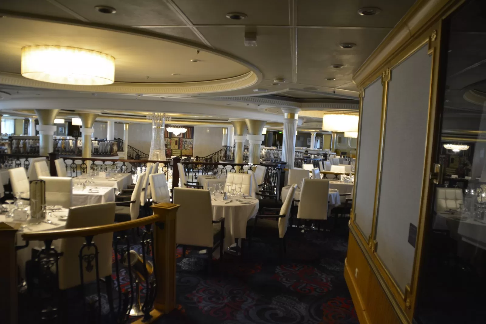 The top of the three-tier waiter service main dining rooms, with seating for 883 guests.