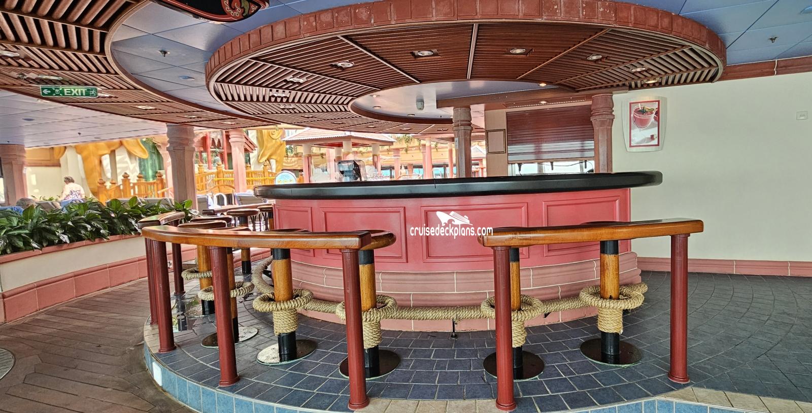 A small counter offering light fare such as pizza, hot dogs and sandwich wraps. It opens for lunch and afternoon snacks from noon to 6.30pm on sea days, 3.00pm to 6.30pm on port days and then from 11.00pm to 5.00am for late night snacks.
