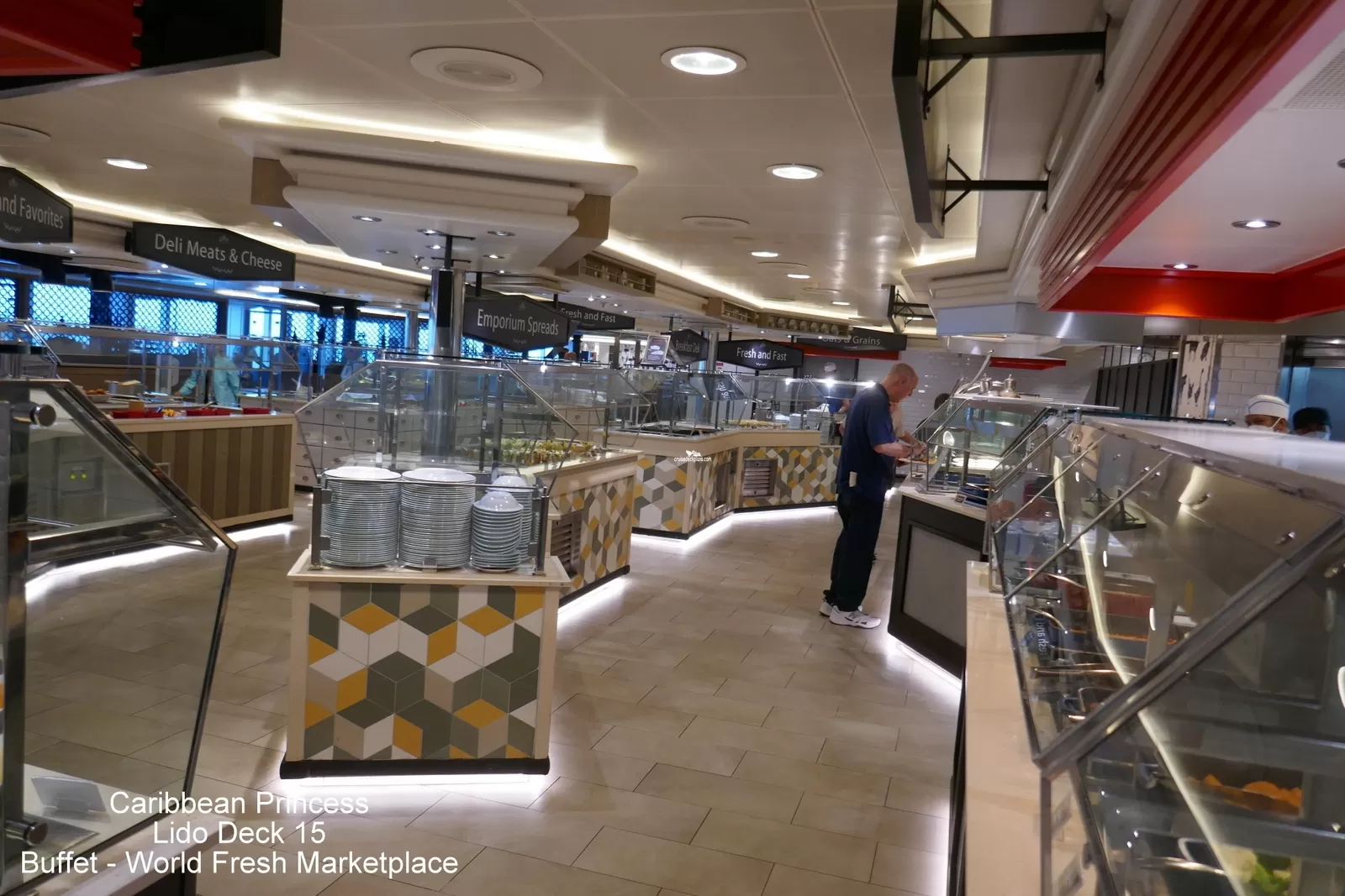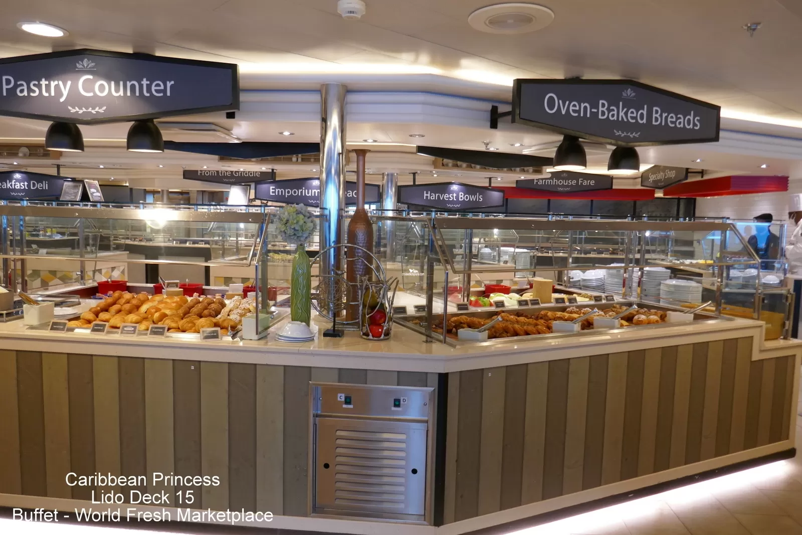 This page shows actual pictures for Caribbean Princess World Fresh Marketplace. Most of our pictures are contributed by actual cruisers. You will find that all the Caribbean Princess World Fresh Marketplace pictures on this page also posted directly onto our deck plans near the actual location the photo was taken. You can browse the pictures here or you can click on them as you are viewing the Caribbean Princess deck plans. For deck plan viewing click on the ship button above or scroll down to view the pictures on this page.