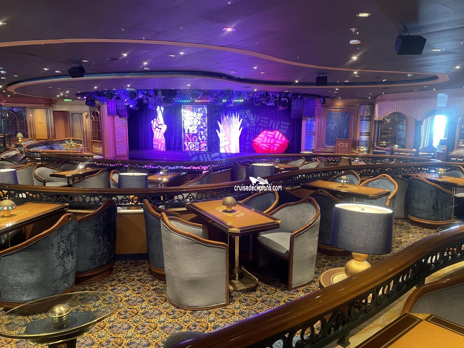 This page shows actual pictures for Caribbean Princess Explorers Lounge. Most of our pictures are contributed by actual cruisers. You will find that all the Caribbean Princess Explorers Lounge pictures on this page also posted directly onto our deck plans near the actual location the photo was taken. You can browse the pictures here or you can click on them as you are viewing the Caribbean Princess deck plans. For deck plan viewing click on the ship button above or scroll down to view the pictures on this page.