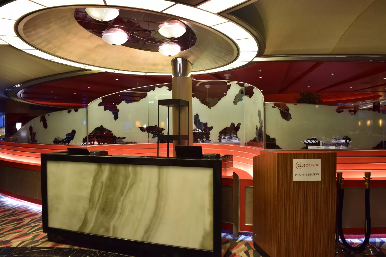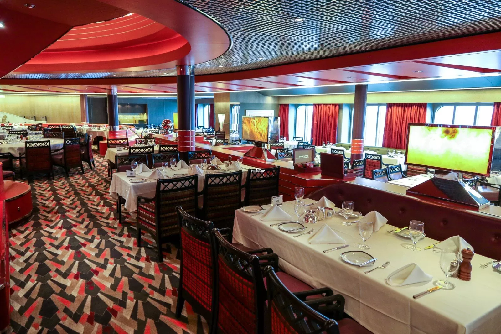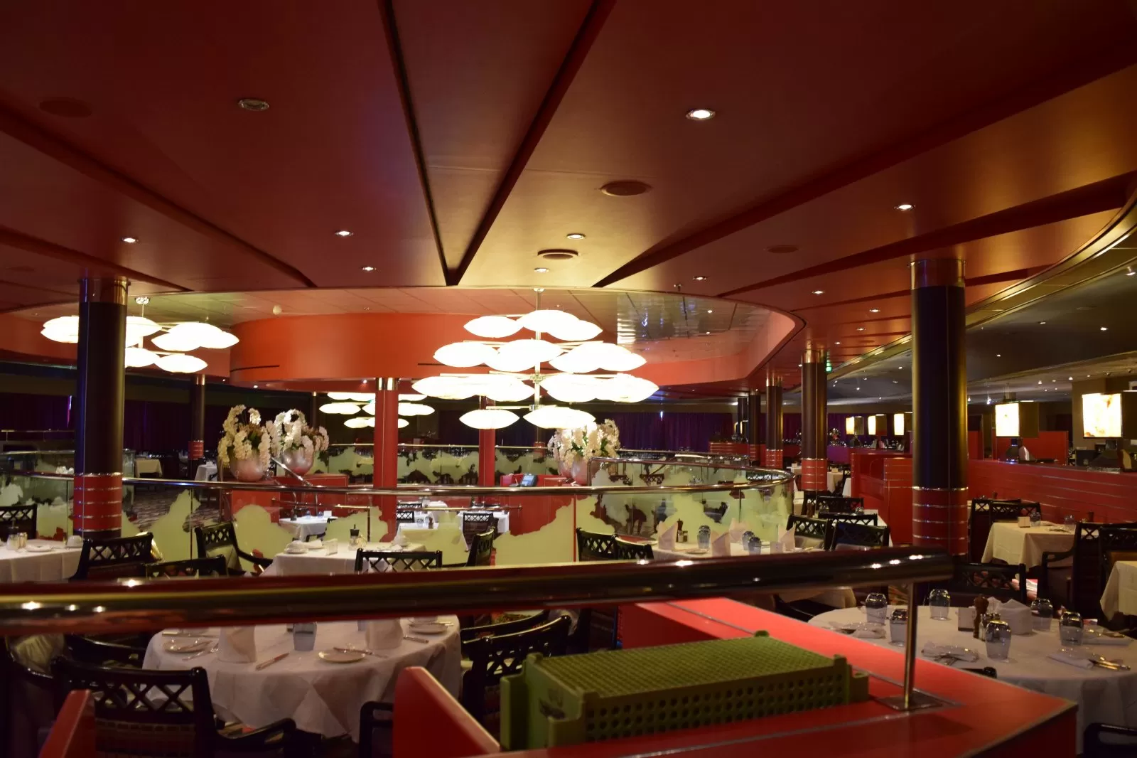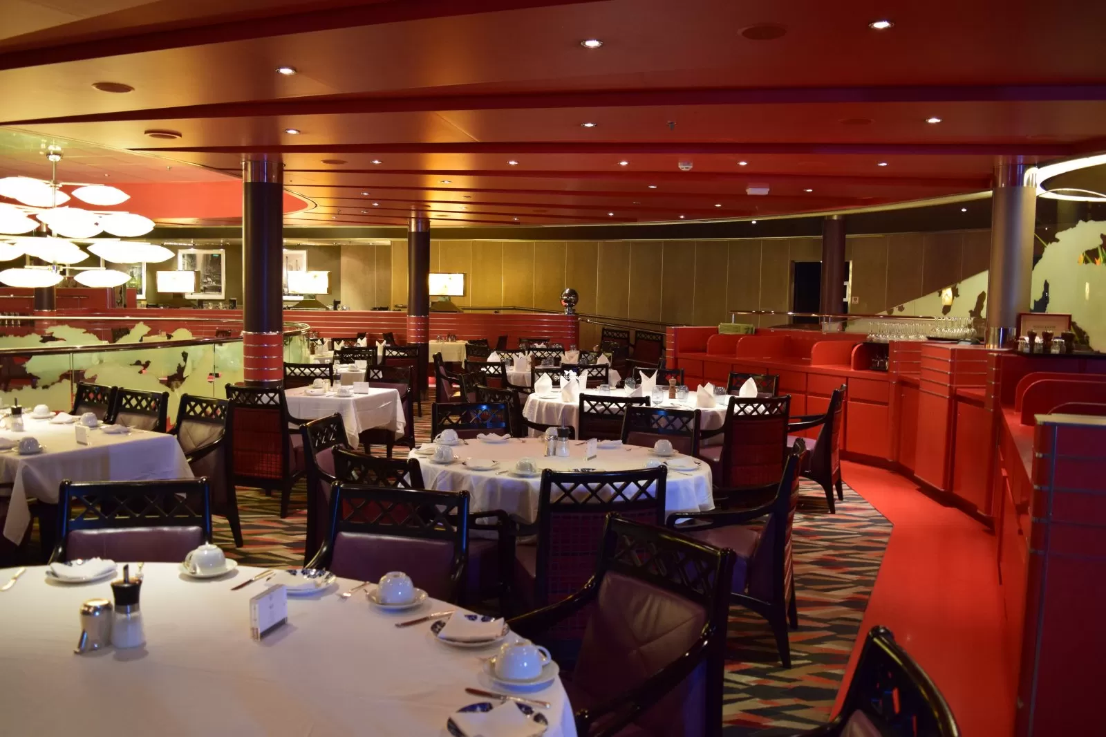 Open for breakfast, lunch, afternoon tea and dinner, the restaurant offers a choice of either traditional pre-set seating and dining times or the ships "As You Wish" freedom dining.