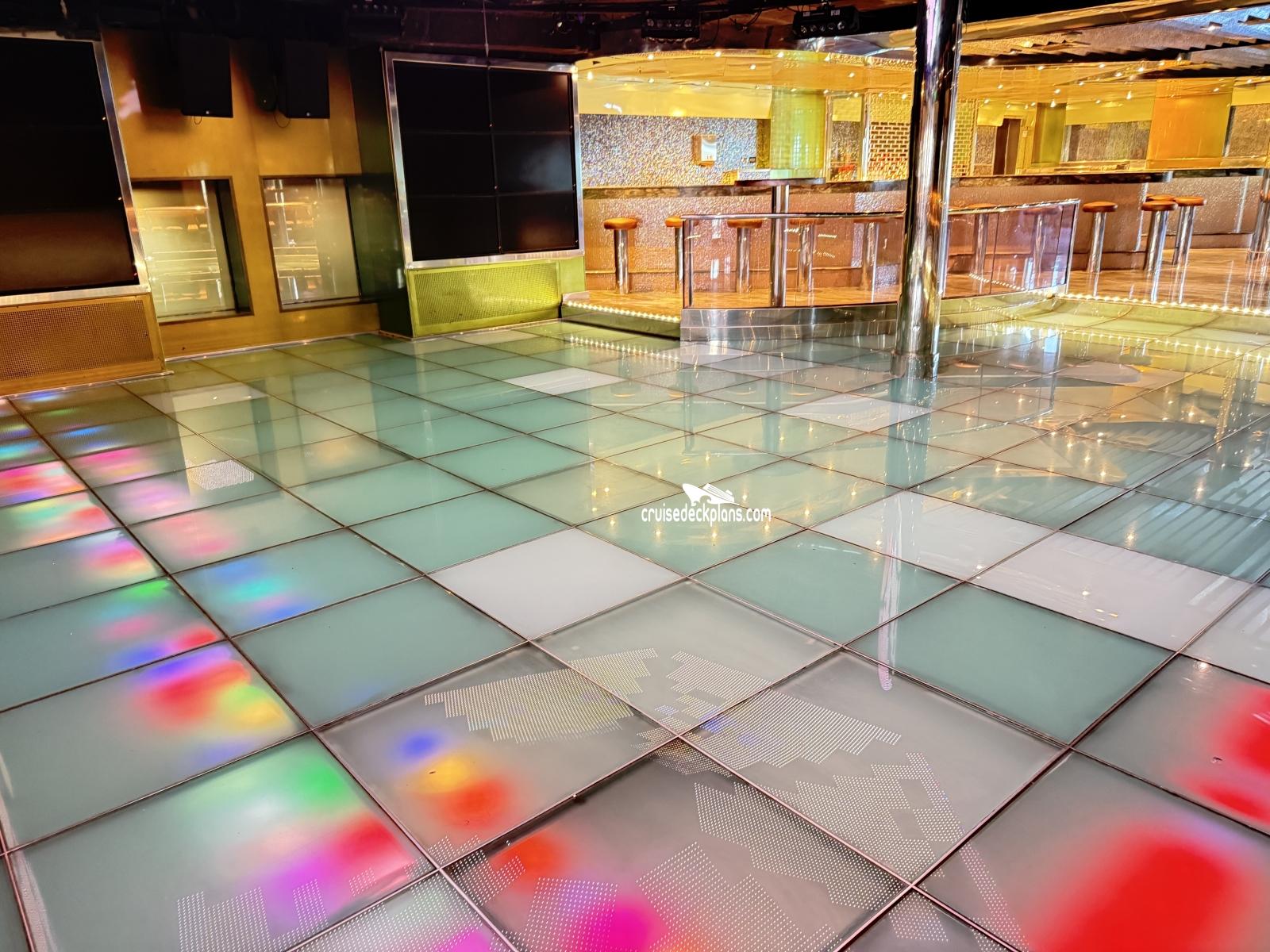 The ship's dance club that has a large dance floor and seating area and its own bar and resident DJ.